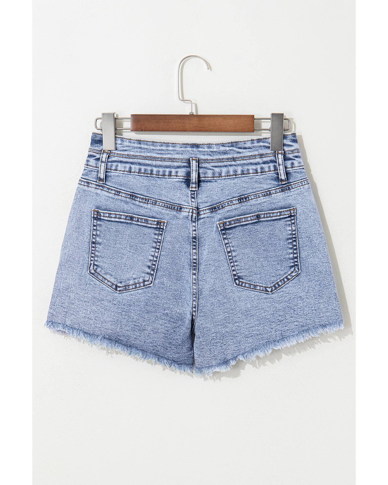 Beau Blue Rhinestone Light Wash Raw Hem High Waist Denim Shorts – 14 US