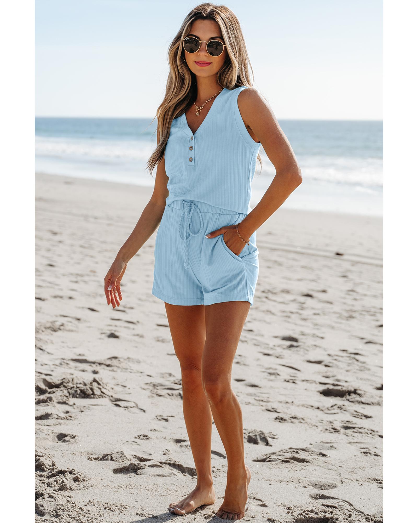 Beau Blue Ribbed Button V Neck Tank Top and Shorts Set - S Original price was: $66.99.Current price is: $35.99.