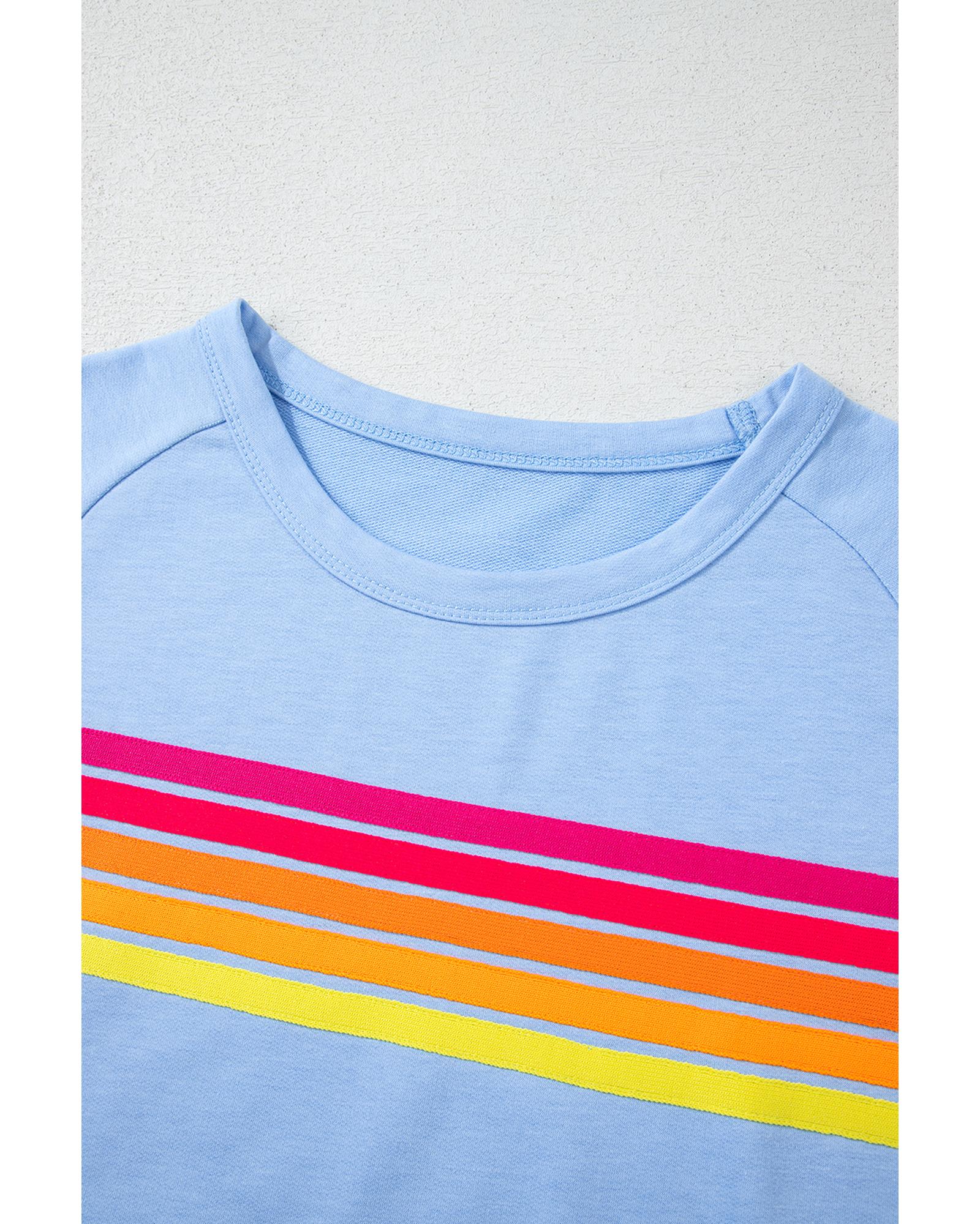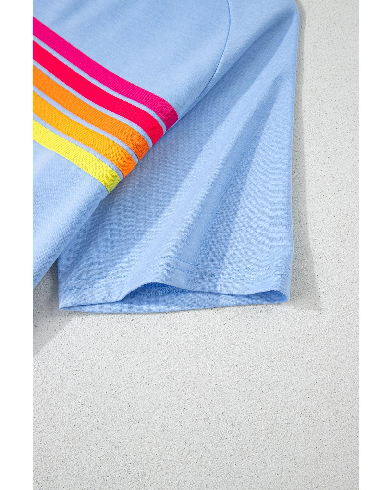 Beau Blue Striped Patch Front Casual Tee – L