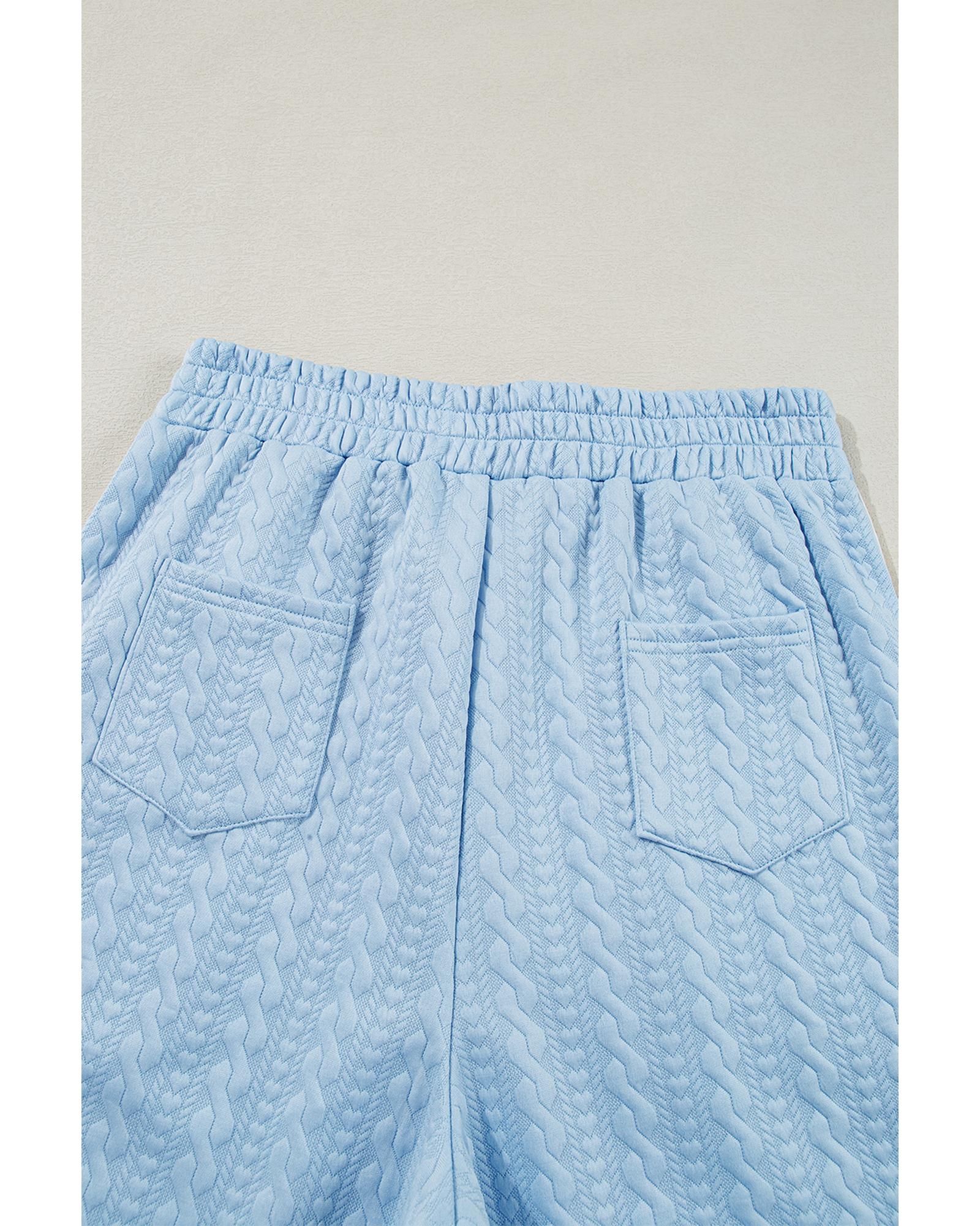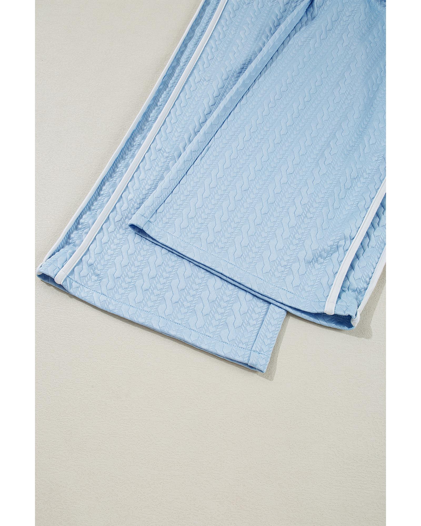 Beau Blue Textured Colorblock Edge Tank Top High Waist Pants Set – L