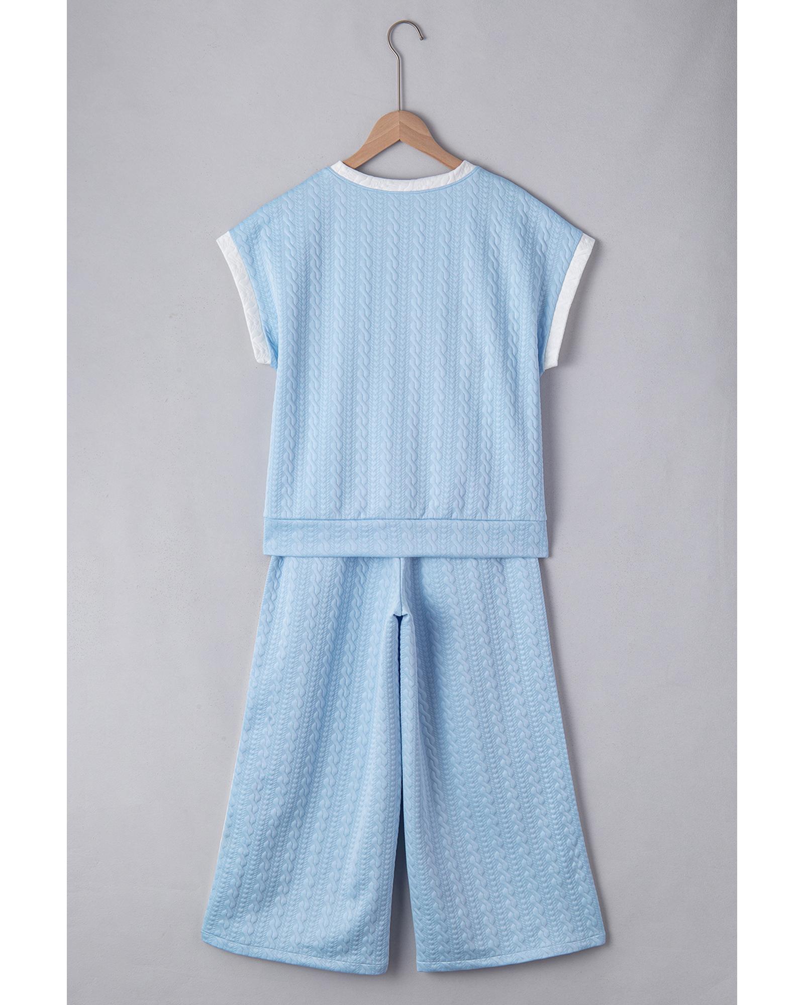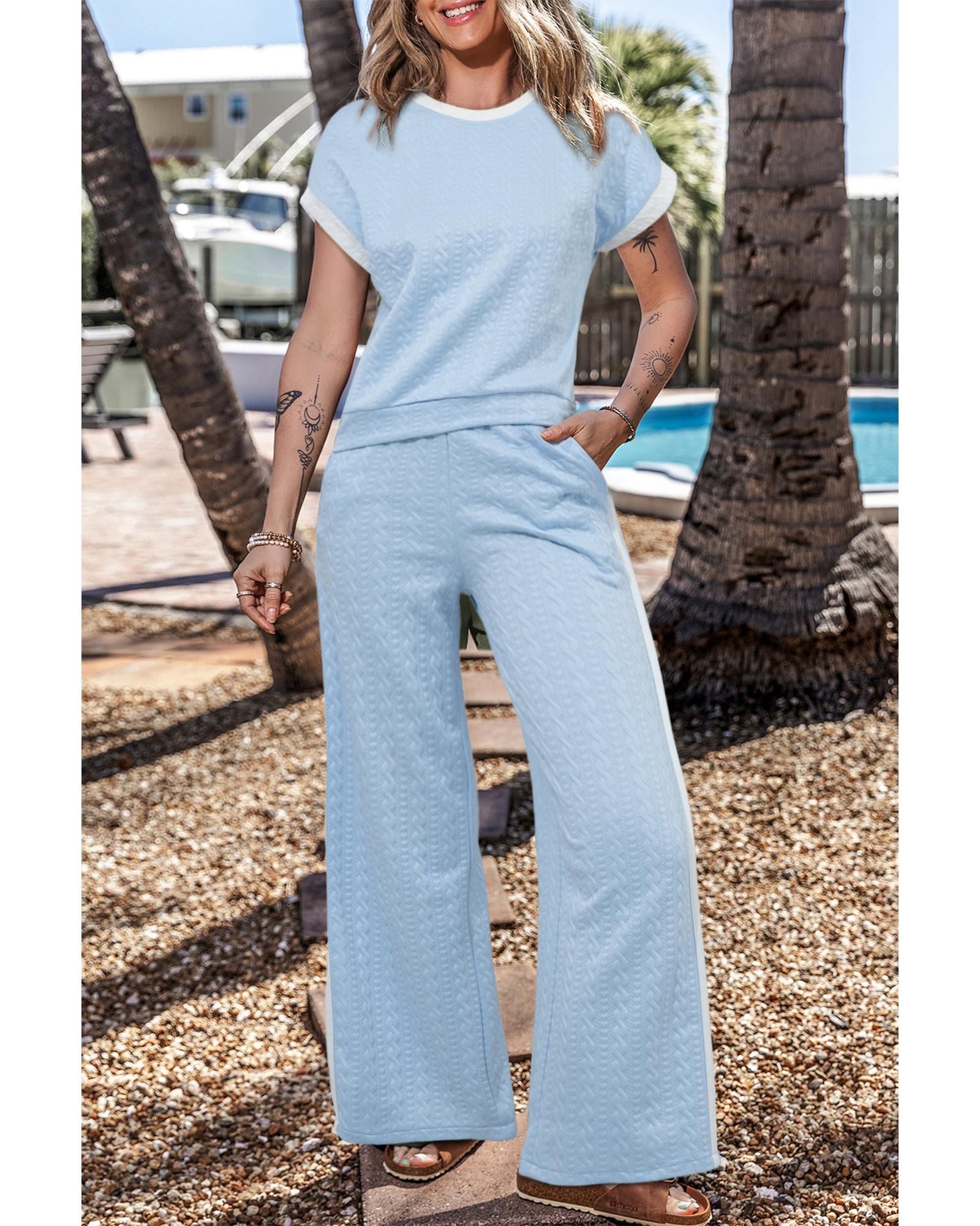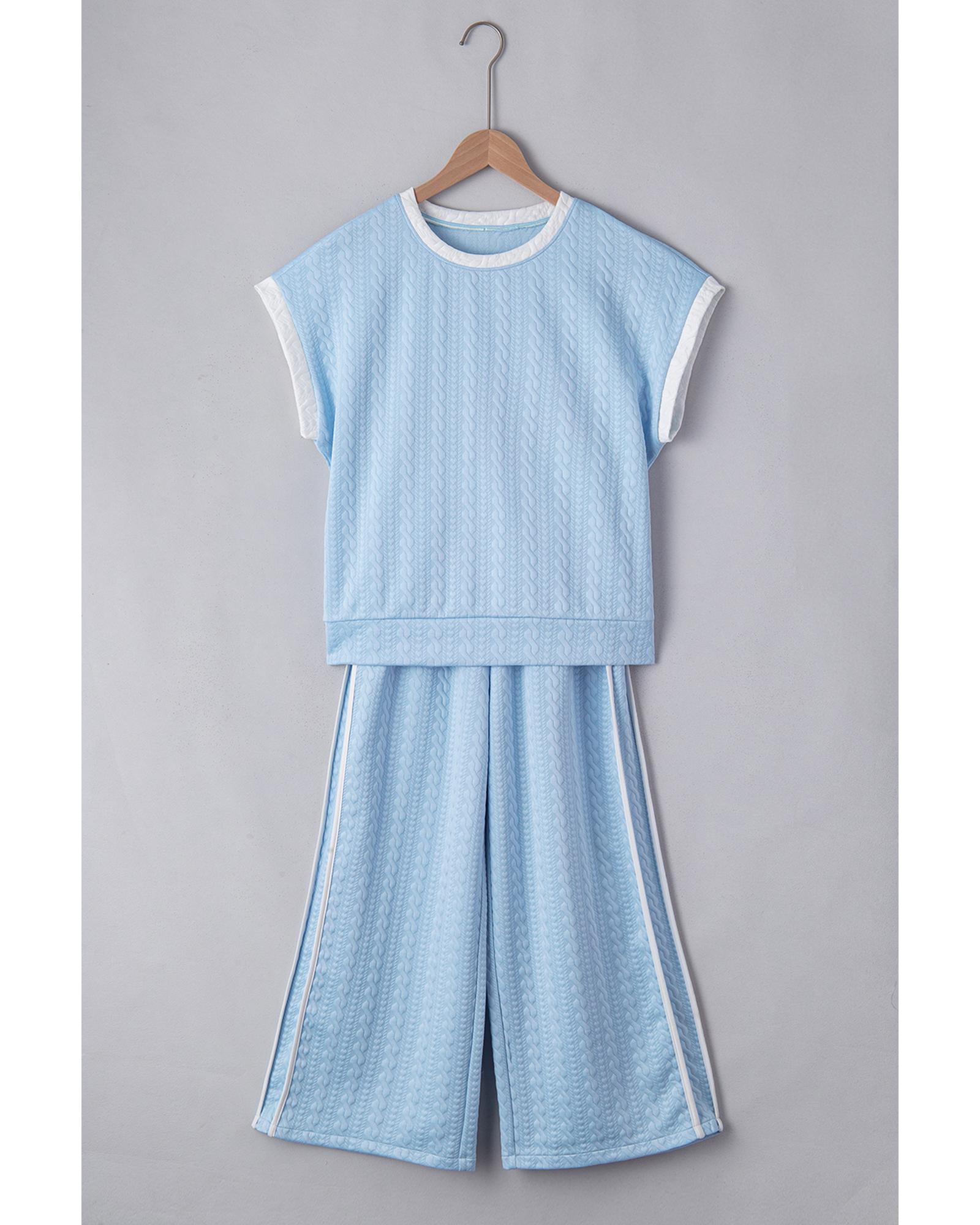 Beau Blue Textured Colorblock Edge Tank Top High Waist Pants Set – M