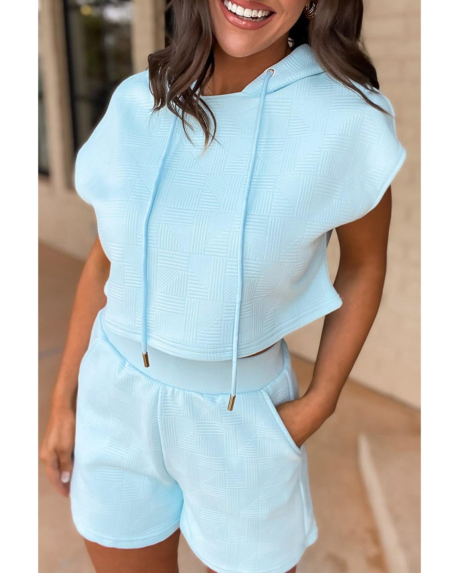 Beau Blue Textured Cropped Hoodie and Shorts Set – XL