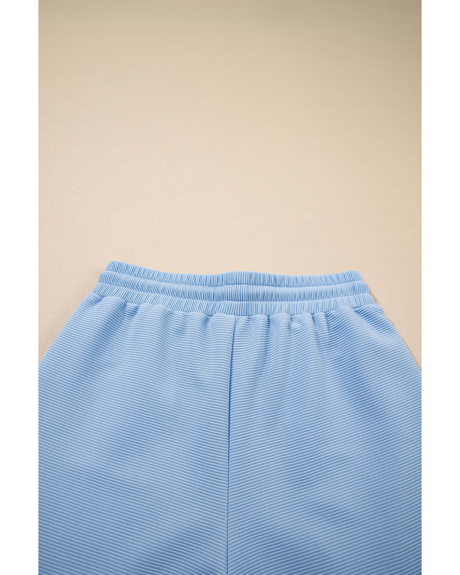 Beau Blue Textured Ruffled Sleeve Zipped Top and Wide Leg Pants Set - S