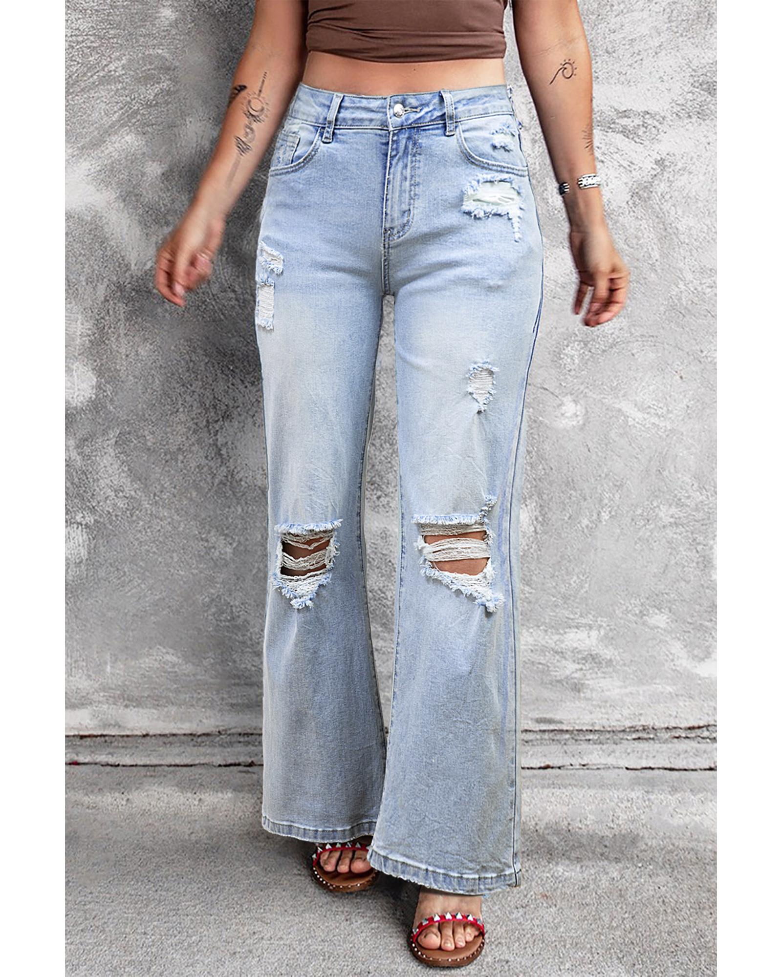 Beau Blue Light Wash Distressed Flare Jeans - 8 US