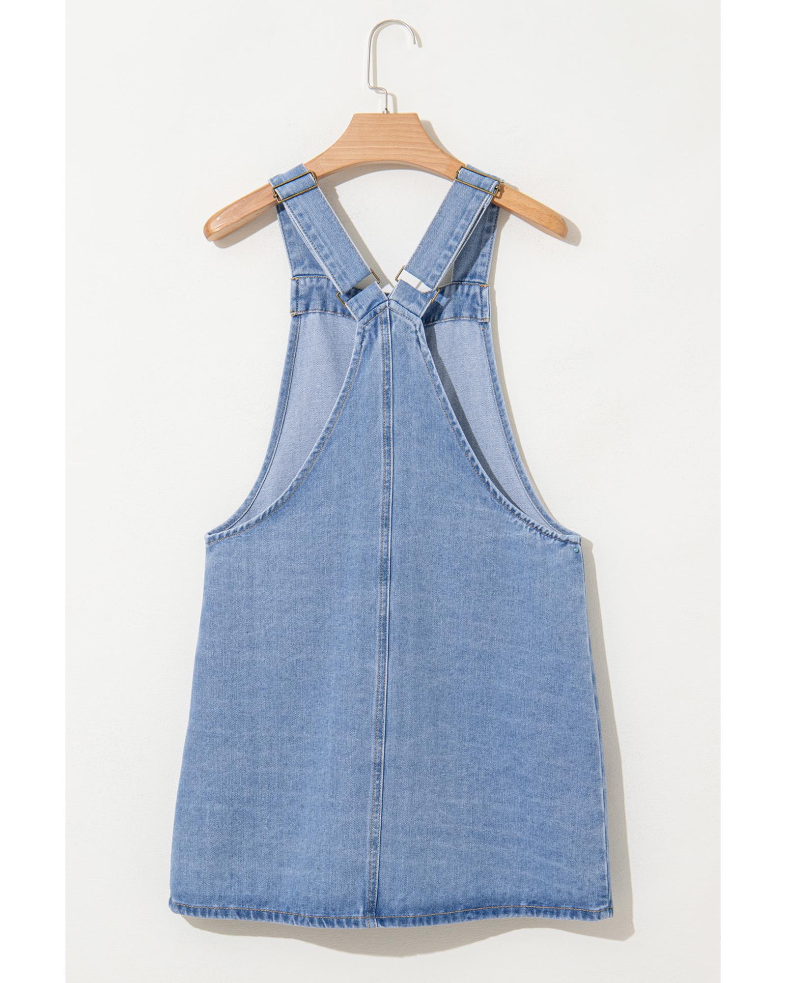 Beau Blue Wide Strap Button Front Pocketed Denim Mini Dress – XL