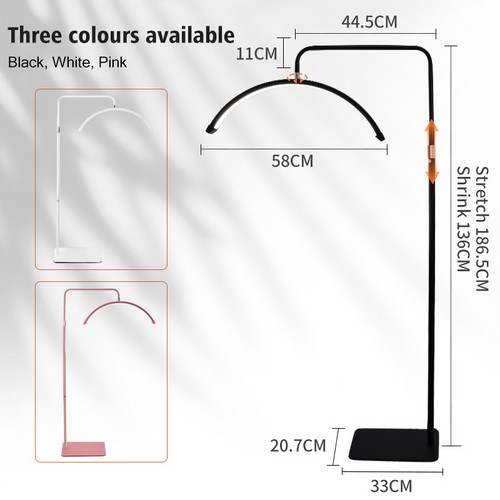 Adjustable Floor Light Stand:The metal light stand with 135cm-185cm adjustable height enables you to place the fill light on floor for stable and convenient usage.