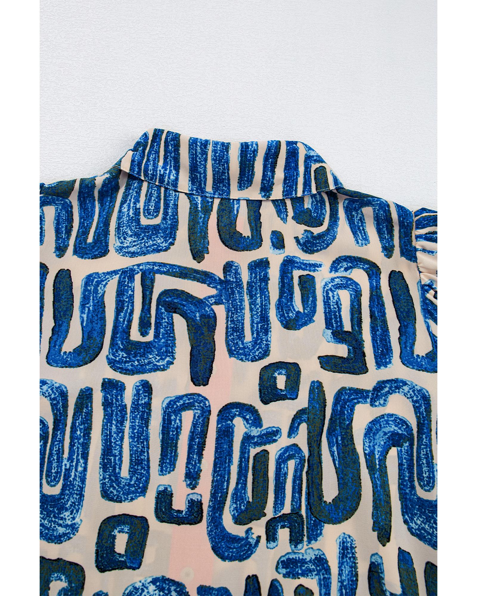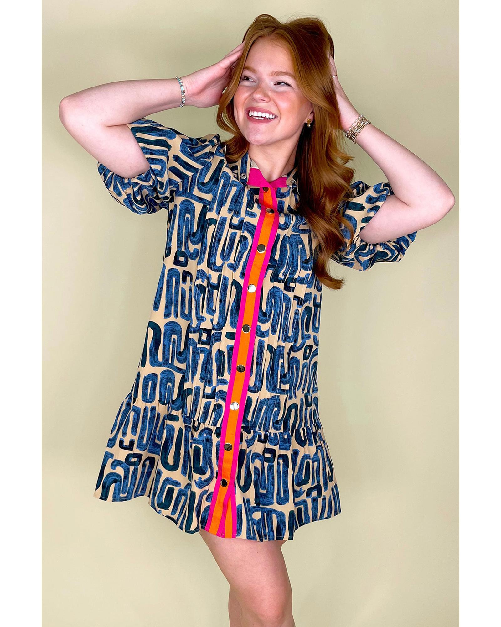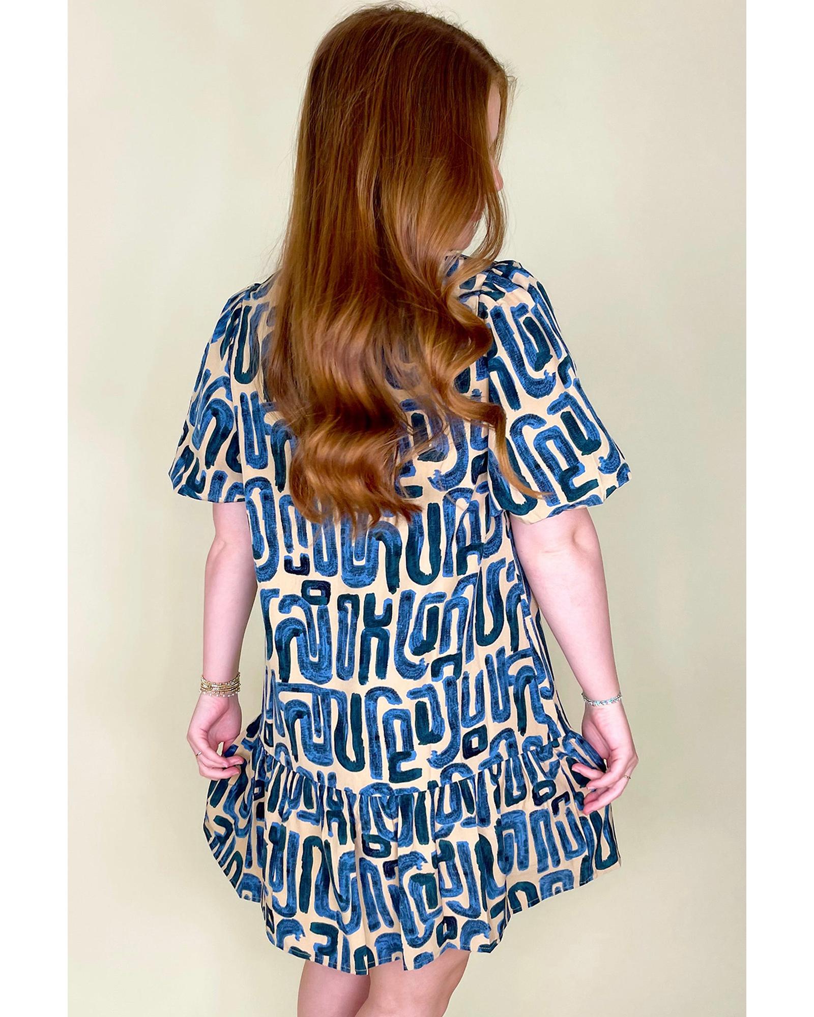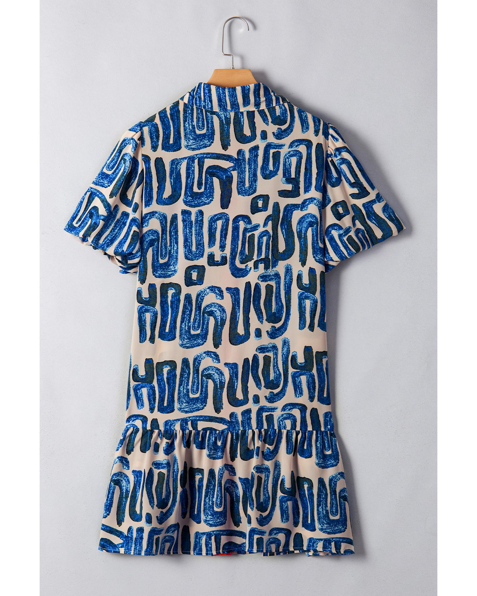 Beige Abstract Print Bubble Sleeve Button up Mini Dress – XL