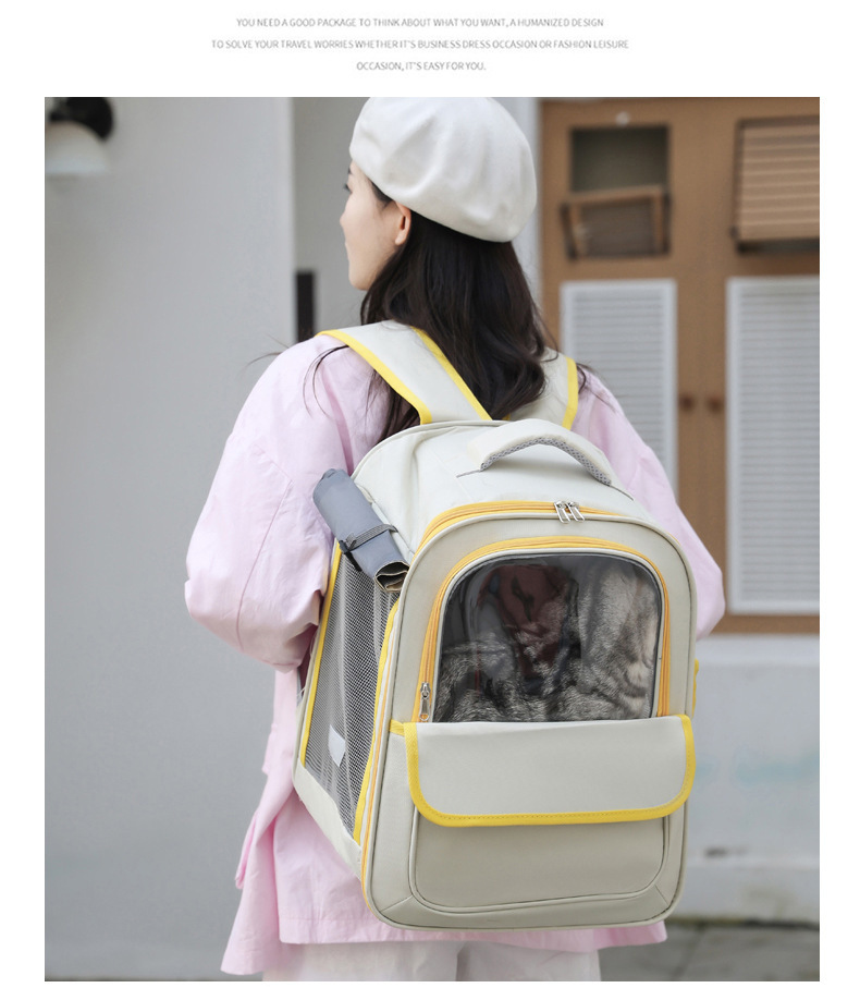 Beige And Pink Spacious Pet Carrier Backpack with Clear Window – Comfortable Travel Bag for Cats & Small Dogs