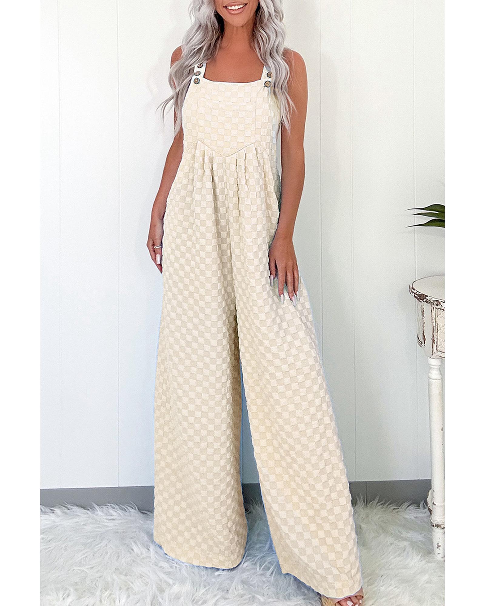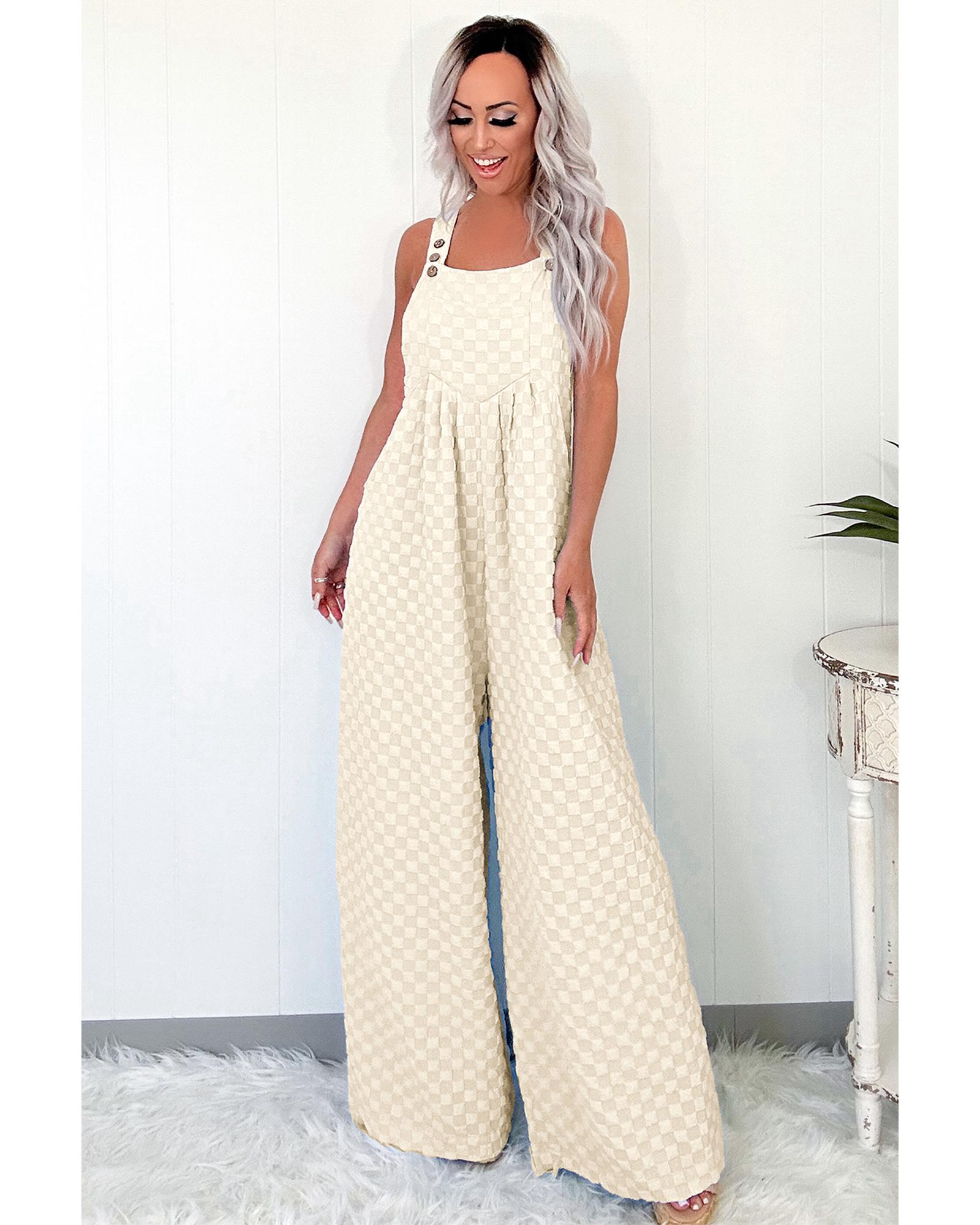 Beige Checkered Pocketed High Waist Wide Leg Overall – XL