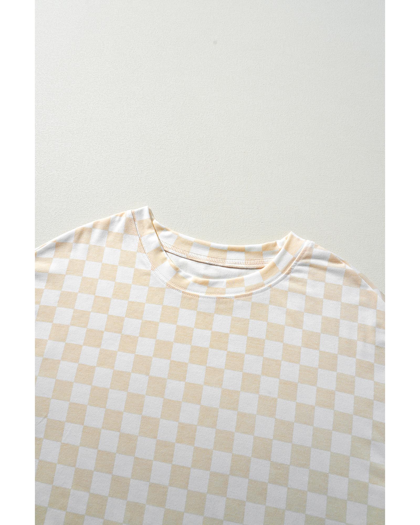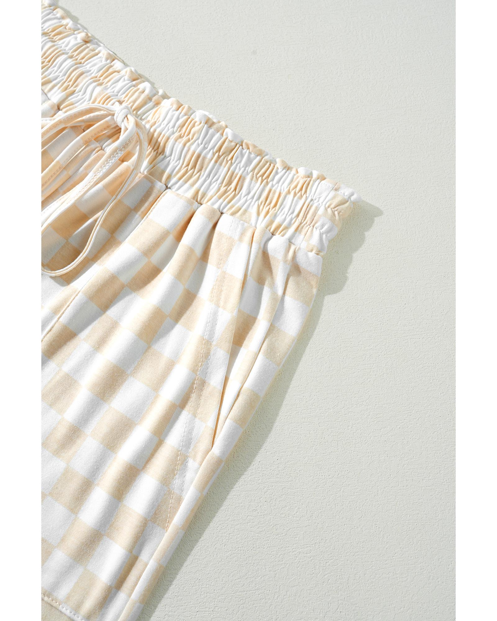 Beige Checkered Print Long Sleeve Top and Pants Lounge Set – S