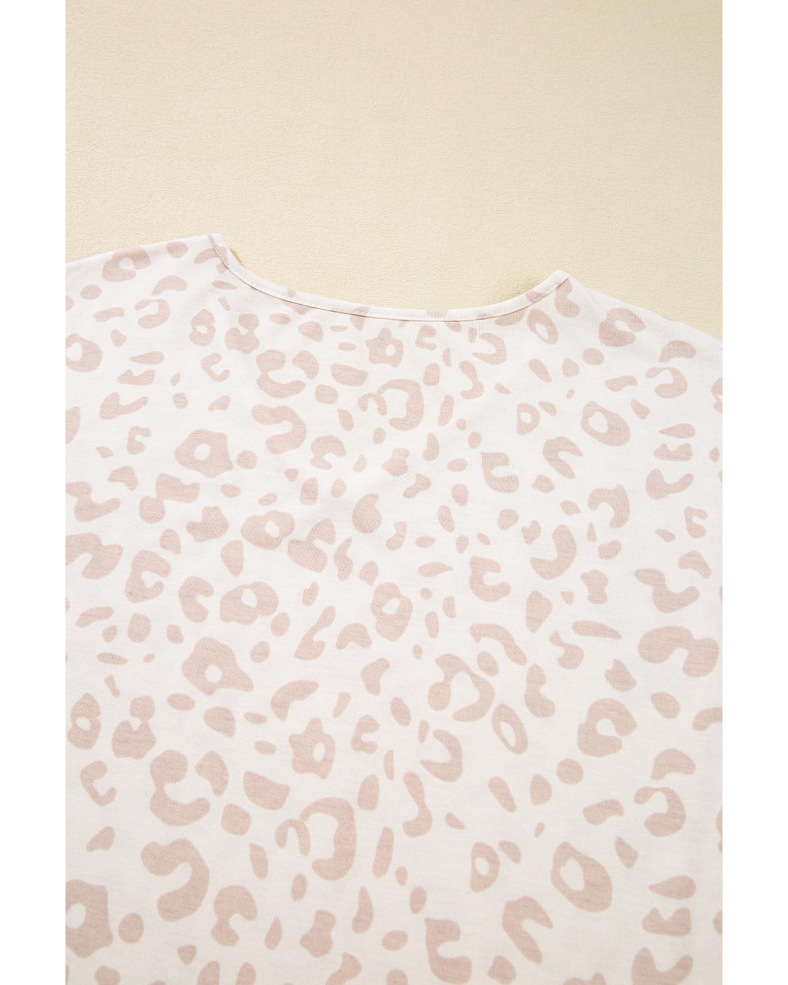 Beige Cheetah V Neck Tee and Pants Lounge Set – S