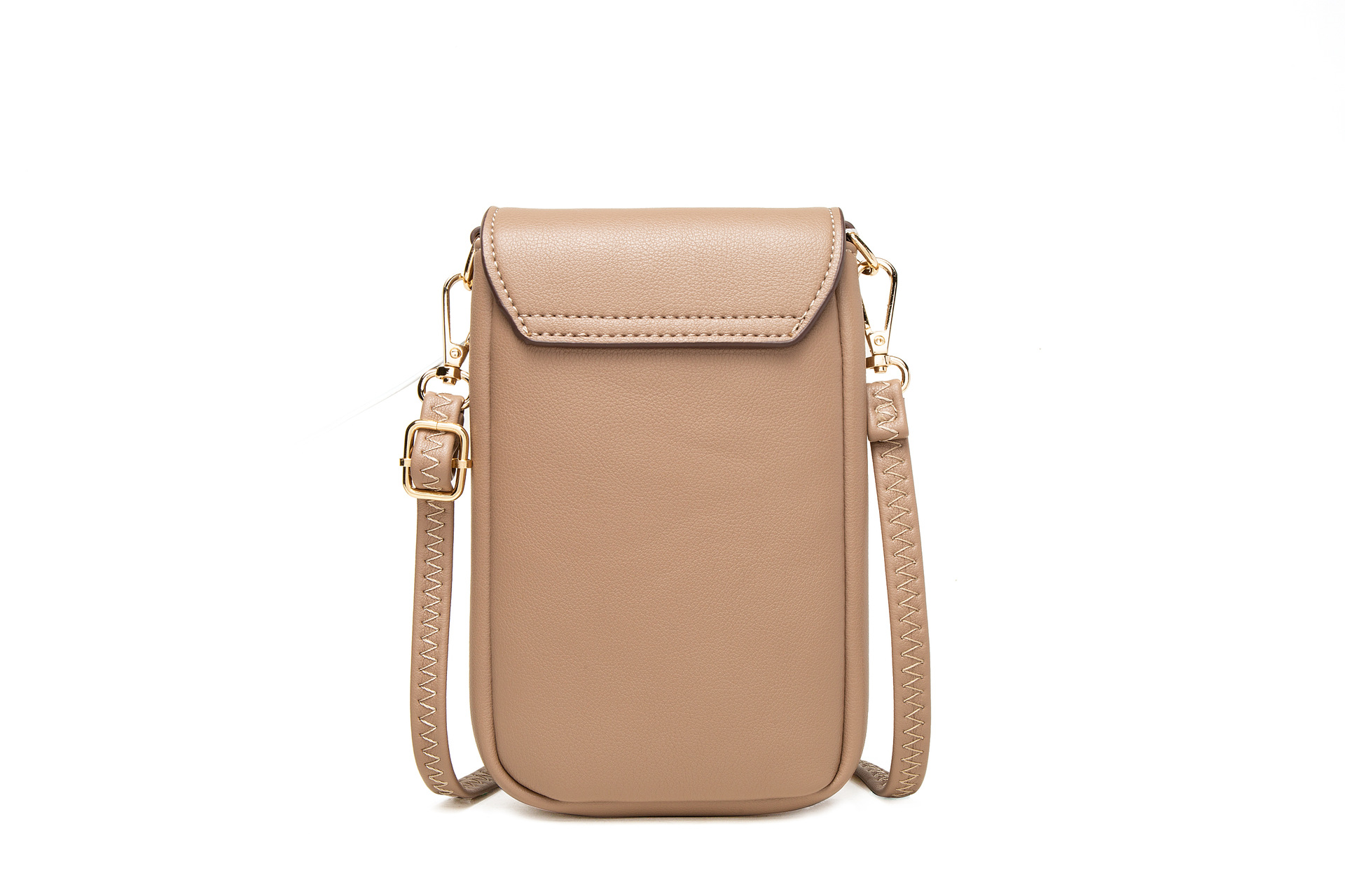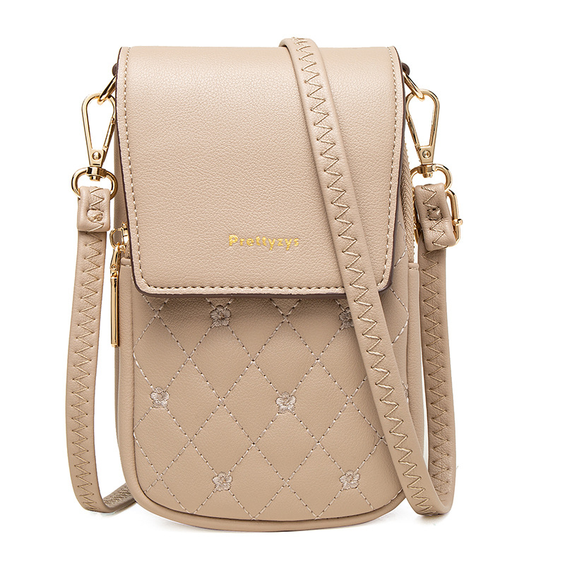 Beige Chic Quilted Crossbody Phone Bag – PU Leather Mini Purse with Floral Stitching & Adjustable Strap