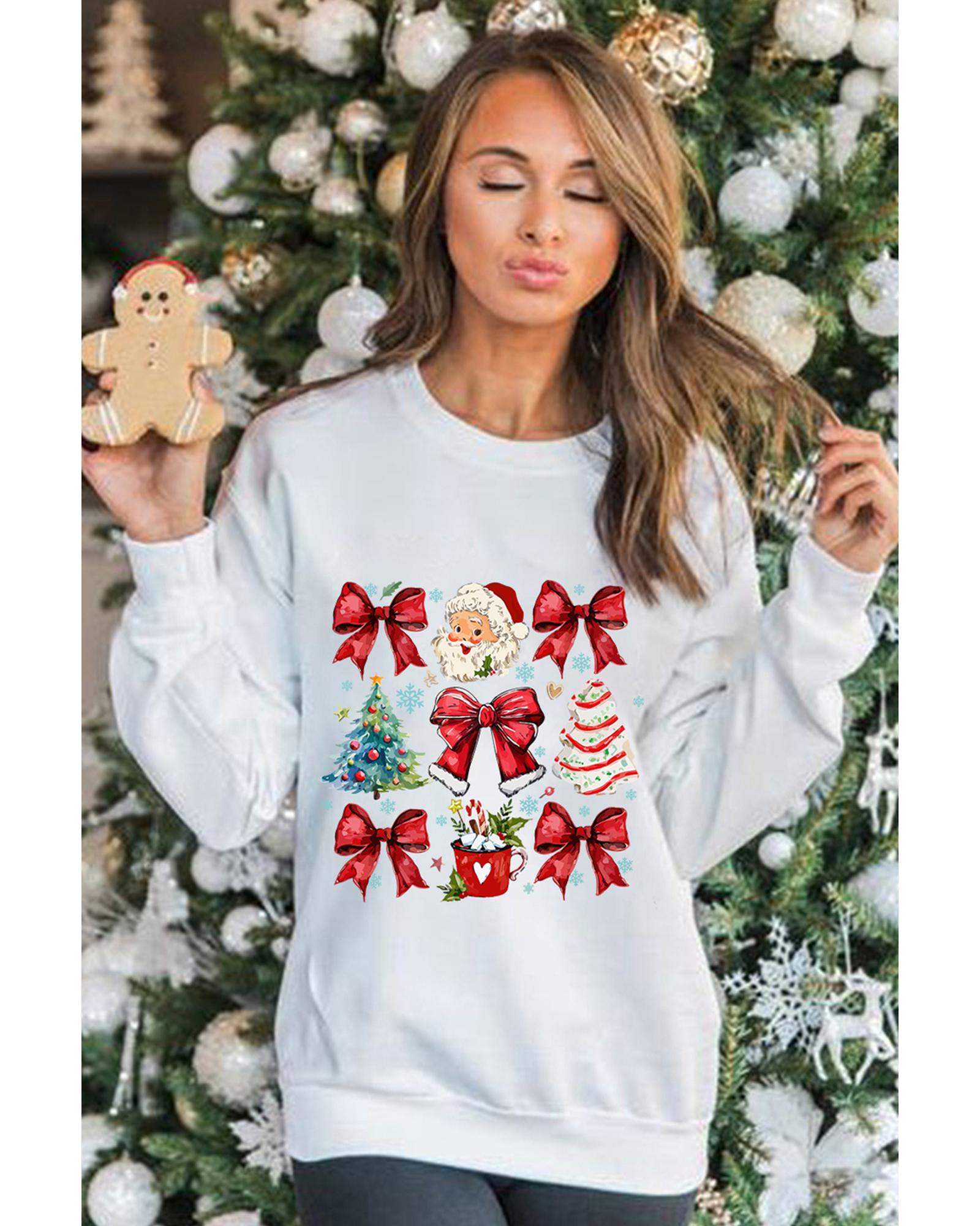 Beige Christmas Tree Bowknot Santa Clause Graphic Holiday Sweatshirt – 2XL