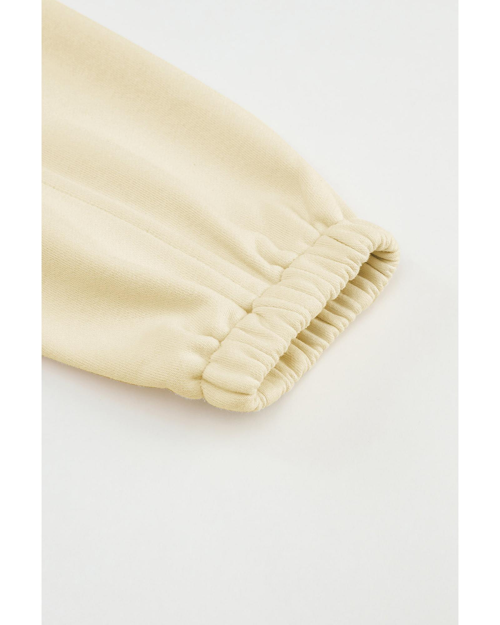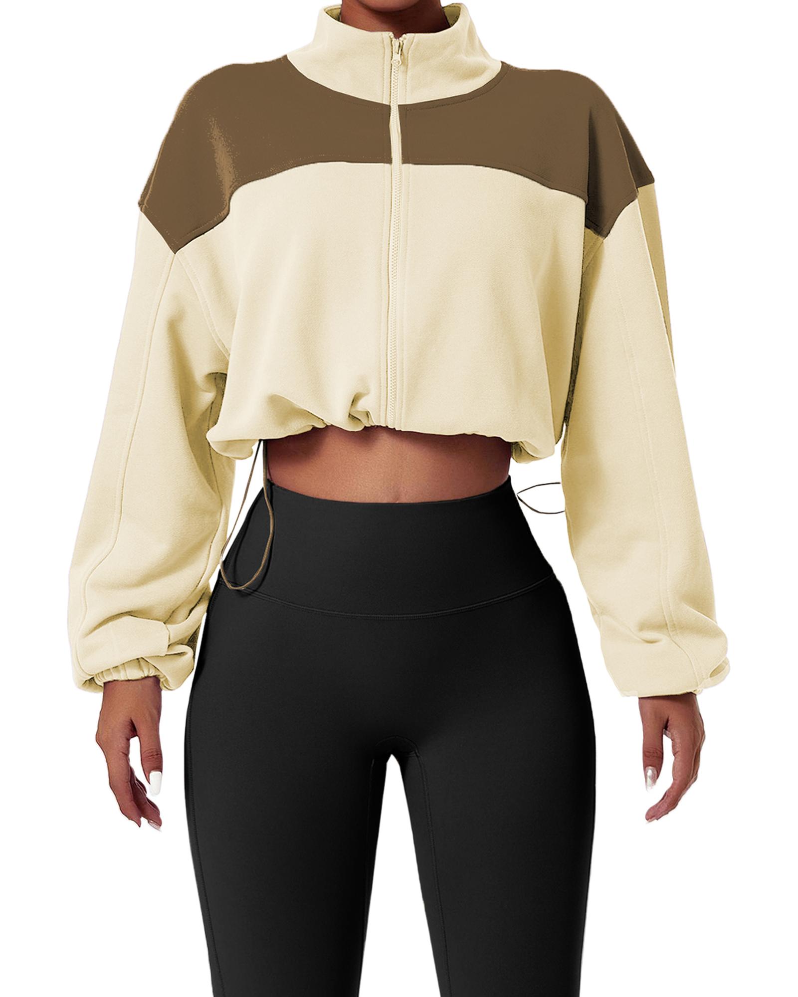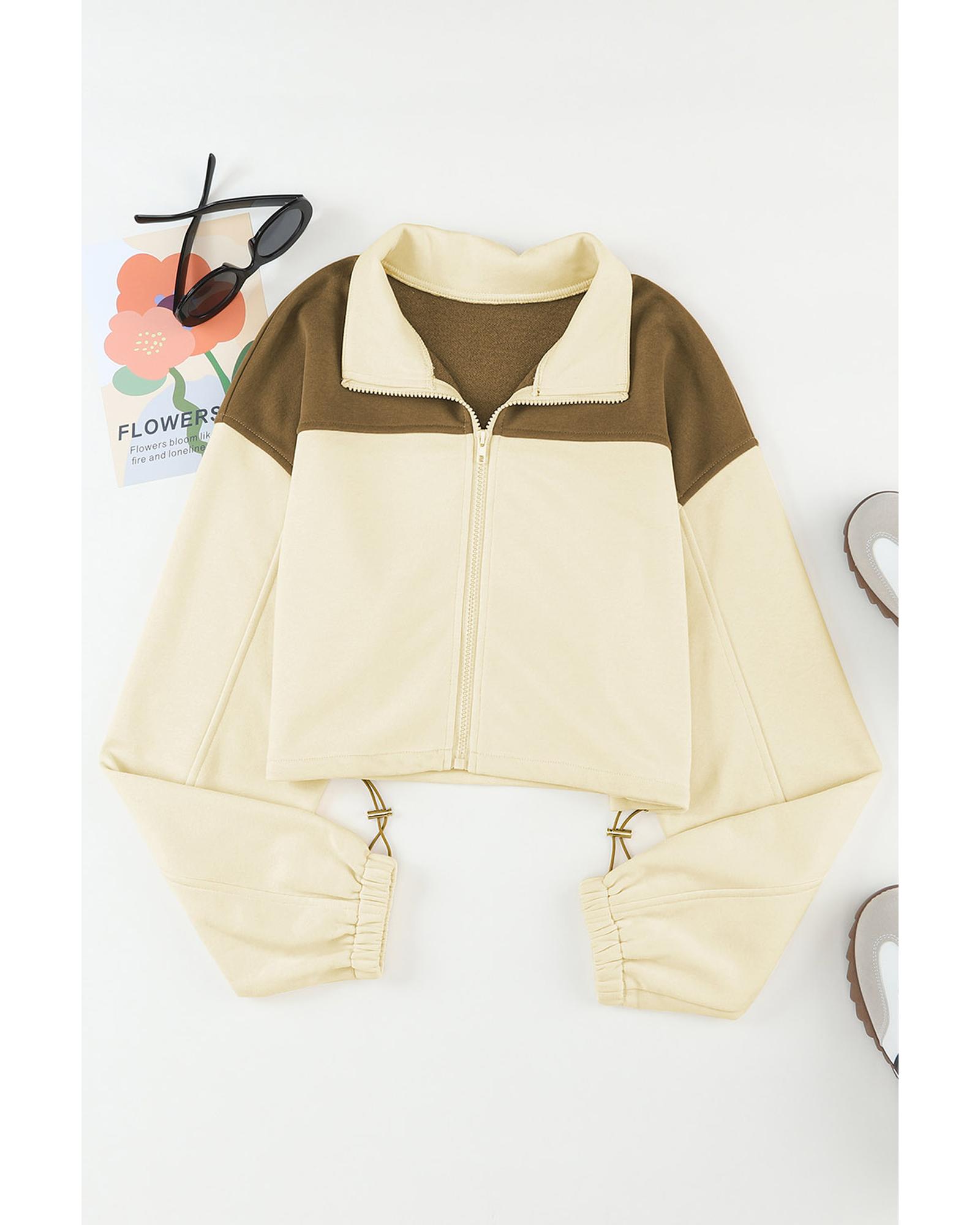 Beige Color Block Drawstring Cropped Athleisure Jacket – L