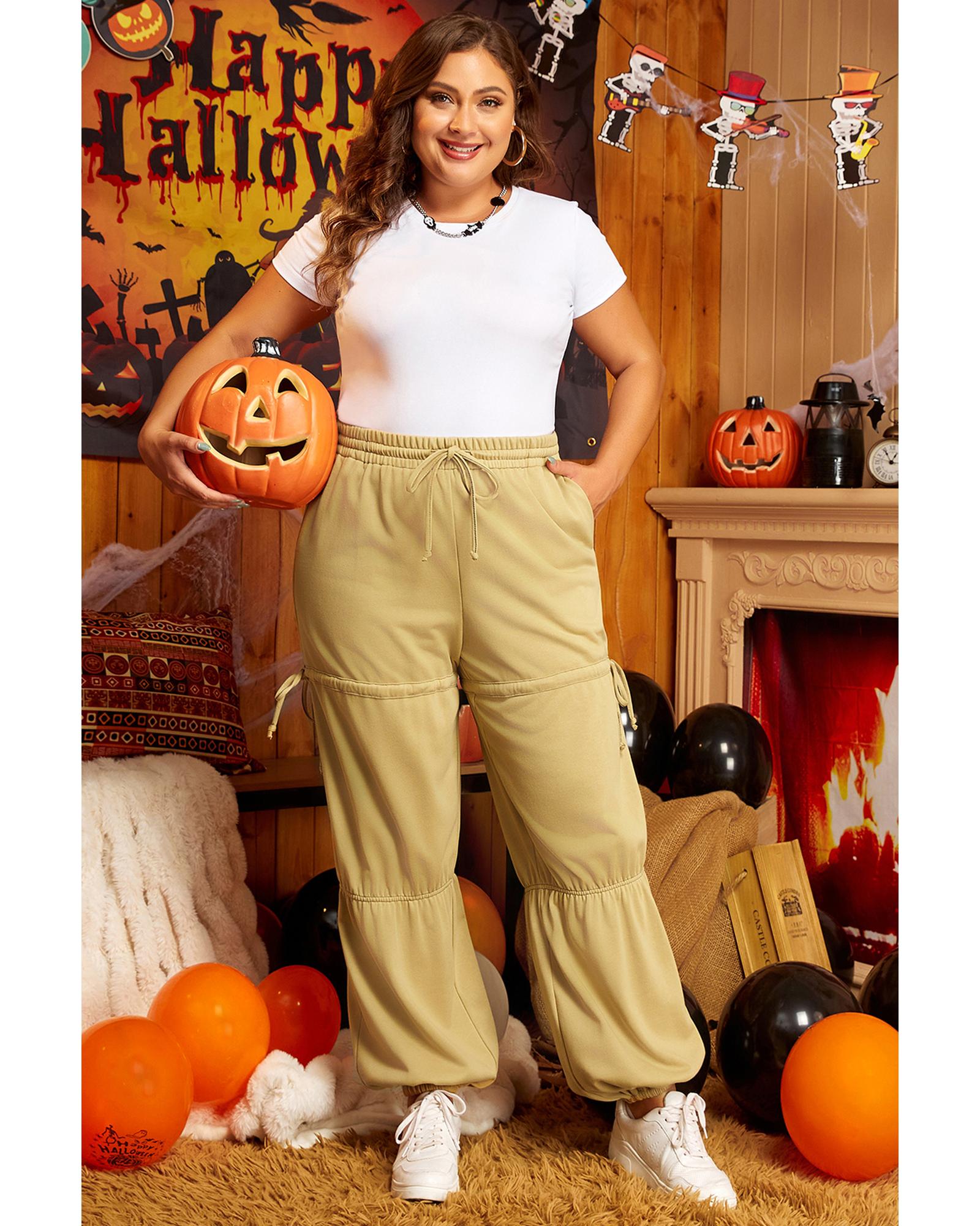 Beige Drawstring Adjusted Band High Waist Plus Size Pants - 4X Original price was: $76.99.Current price is: $41.99.