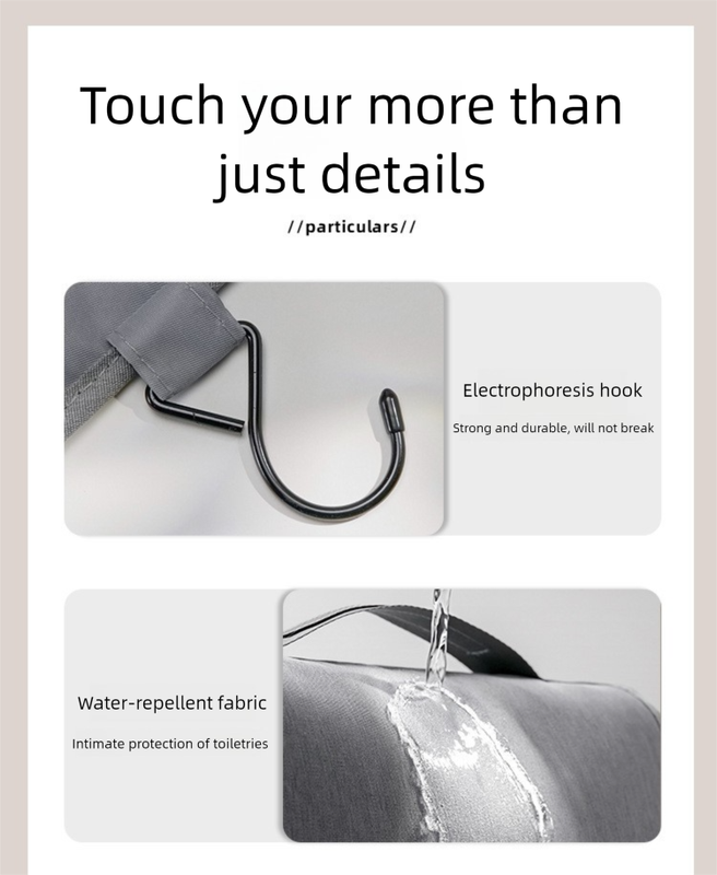 - Smart Hanging Design: Features a sturdy built-in hook, allowing you to conveniently hang the bag in bathrooms, on towel racks, or door knobs, saving valuable counter space and keeping your items within easy reach.