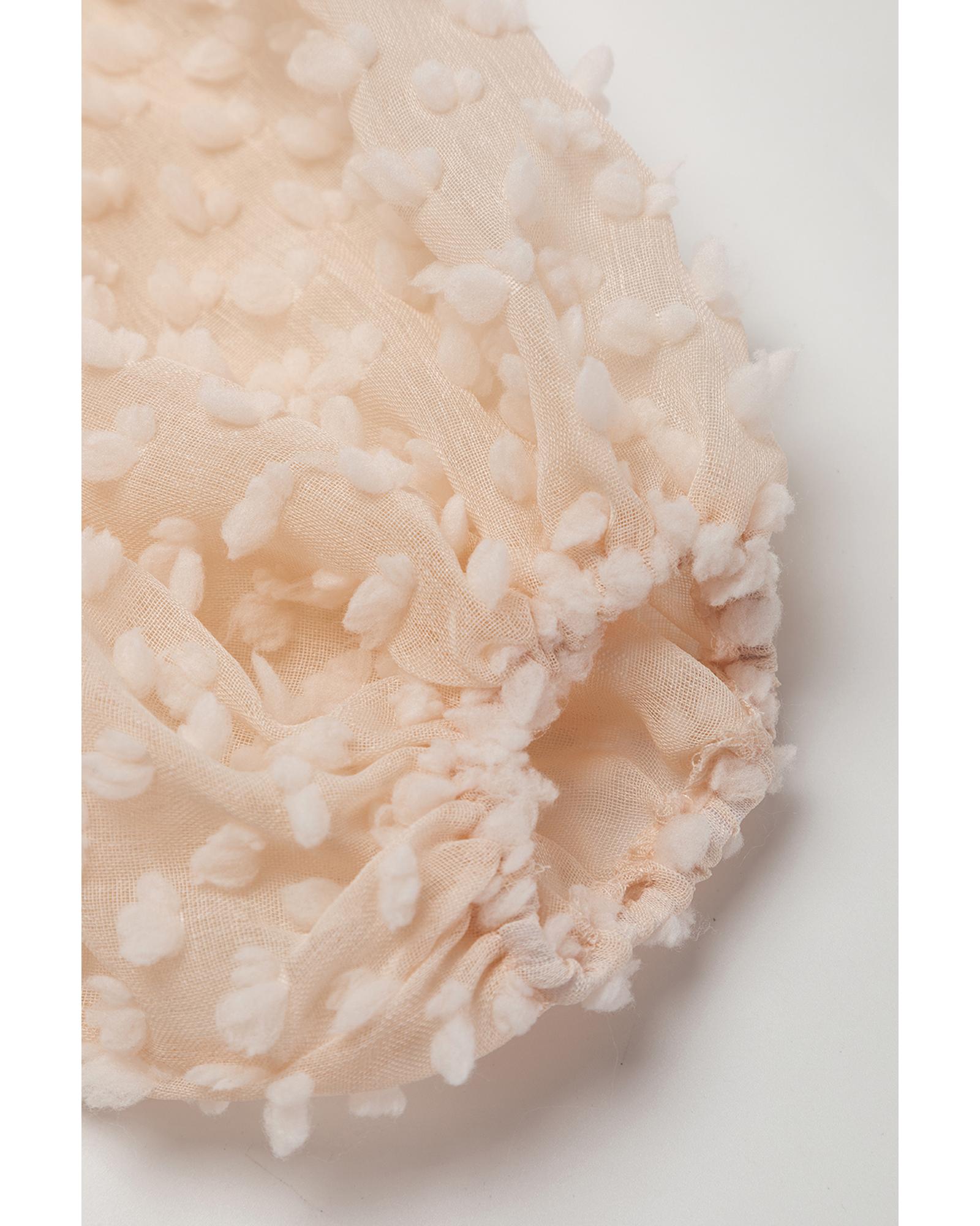 Beige Embellished Puff Sleeve Tiered A-line Dress – S