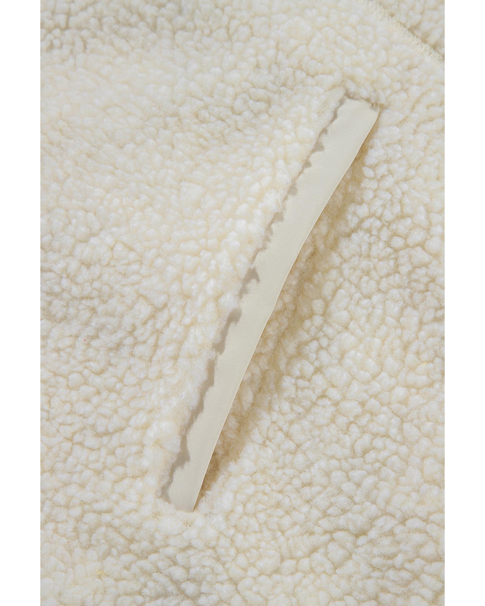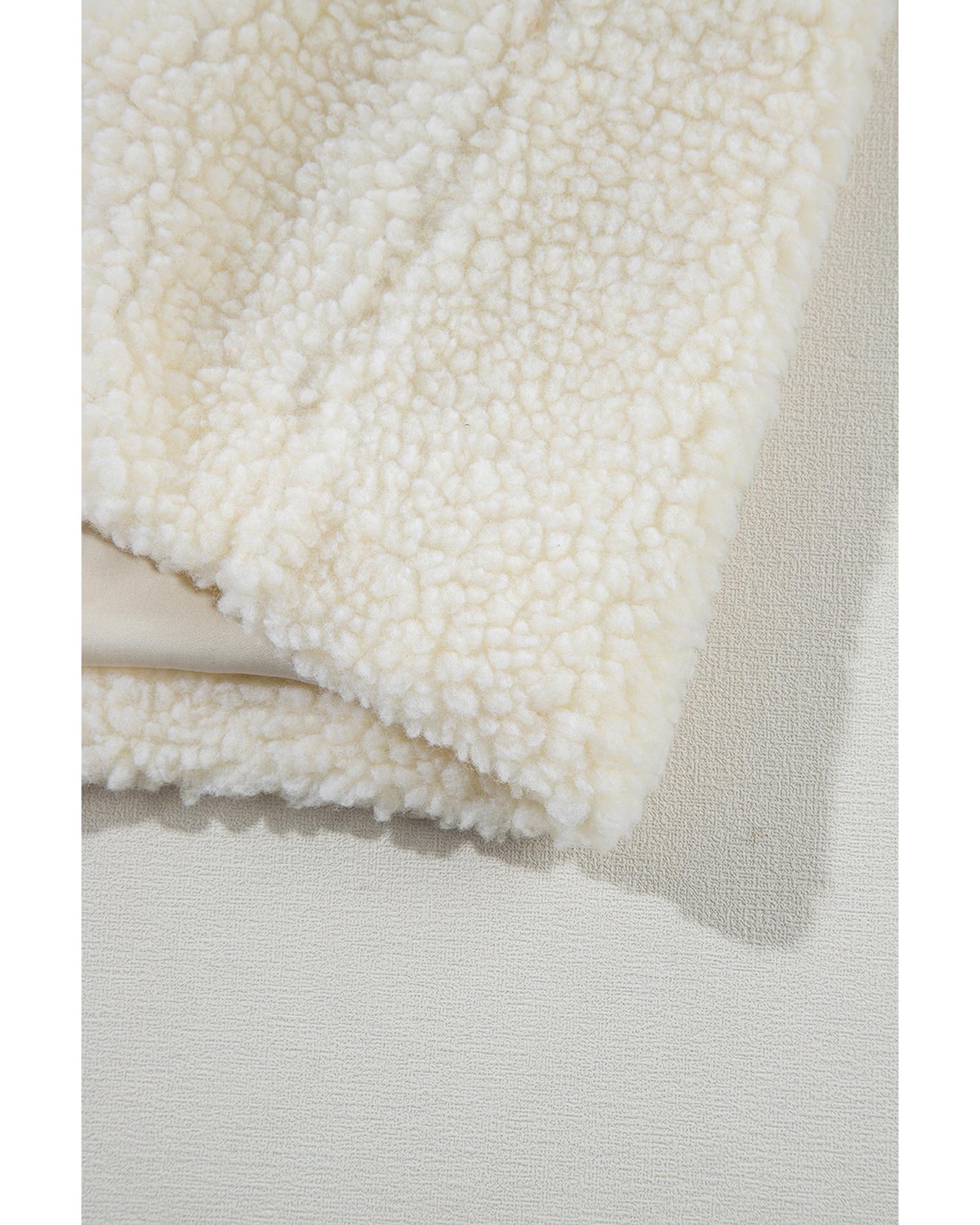 Beige Fleece Zip Up Drawstring Hooded Pocketed Jacket – M