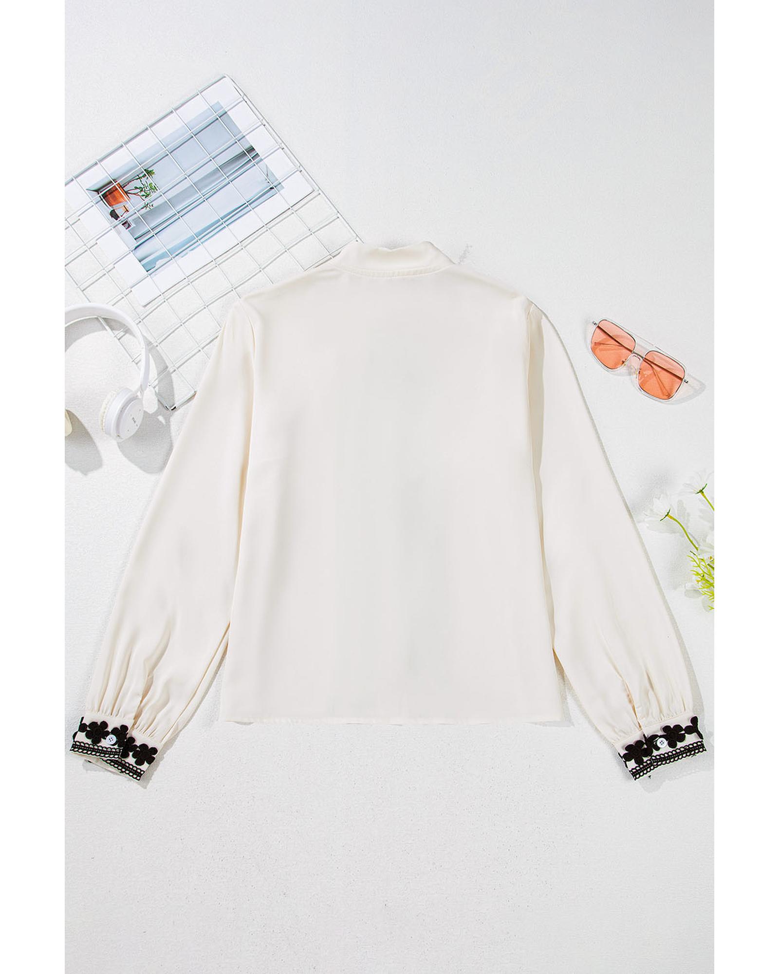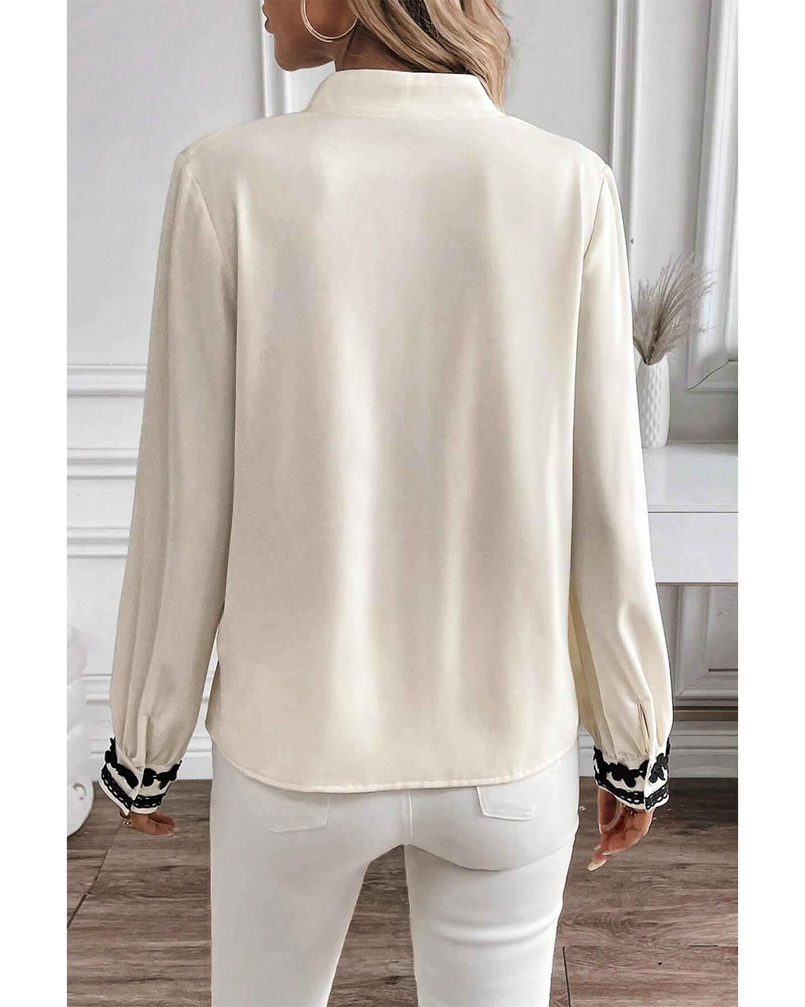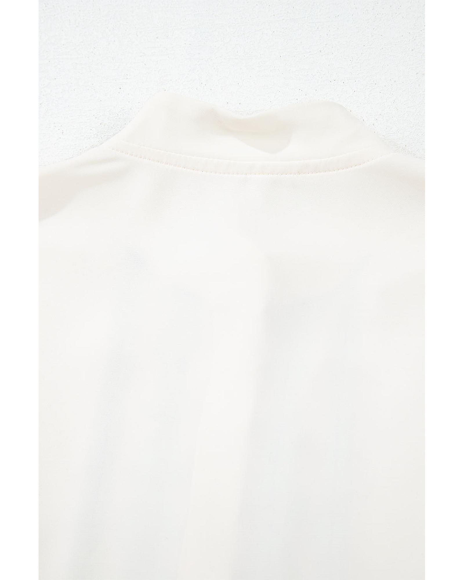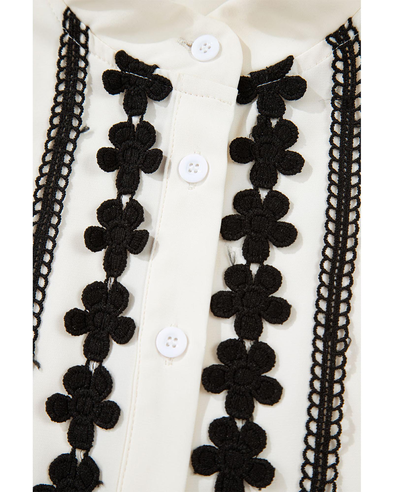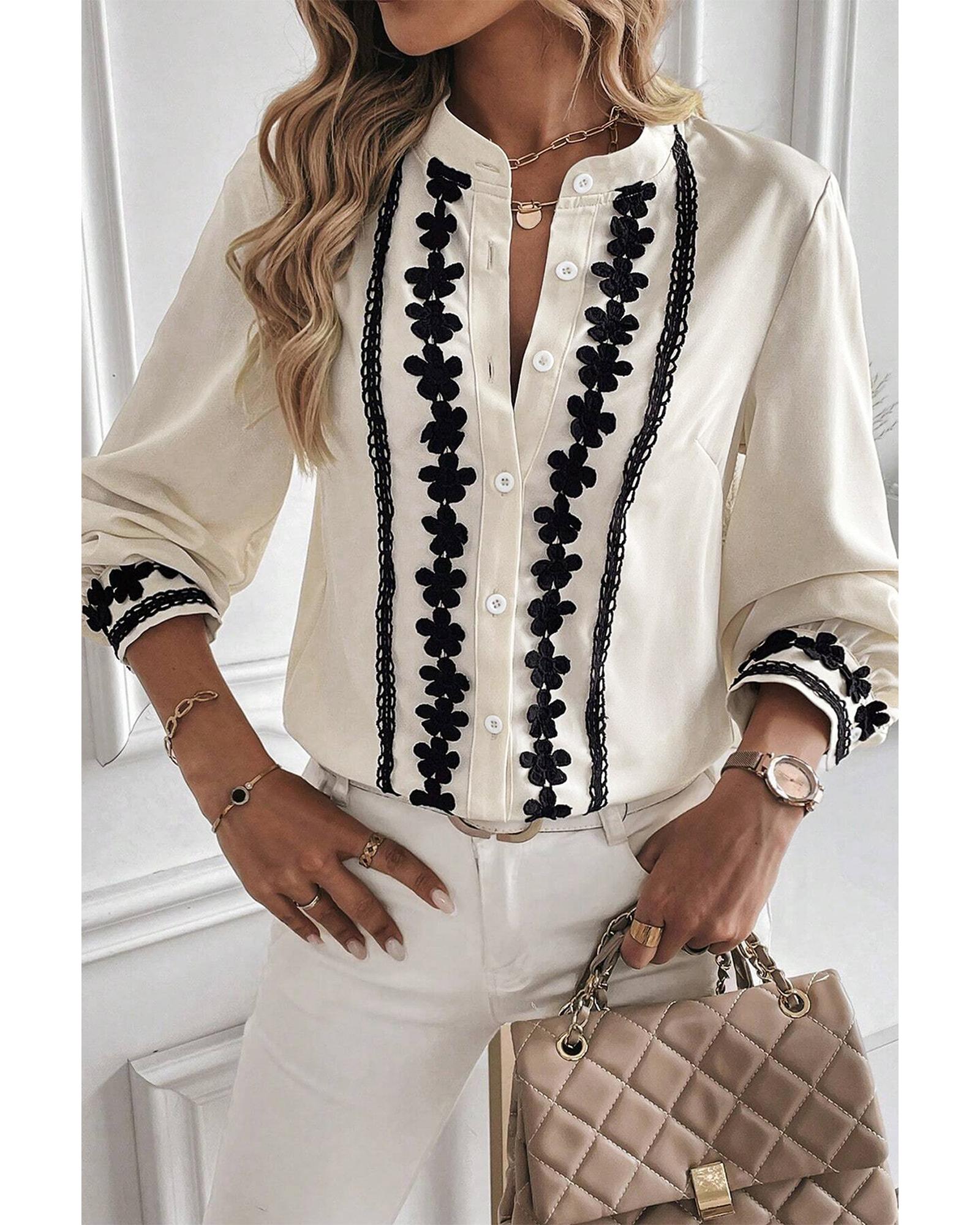 Beige Floral Embroidered Stand Neck Buttoned Shirt – S