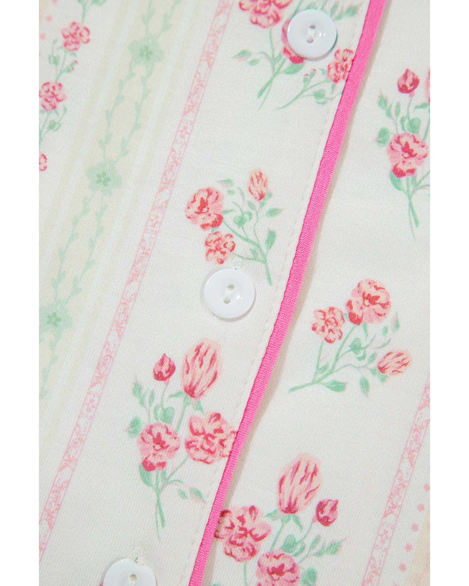 Beige Floral Print Contrast Pipping Short Pajamas Set – M