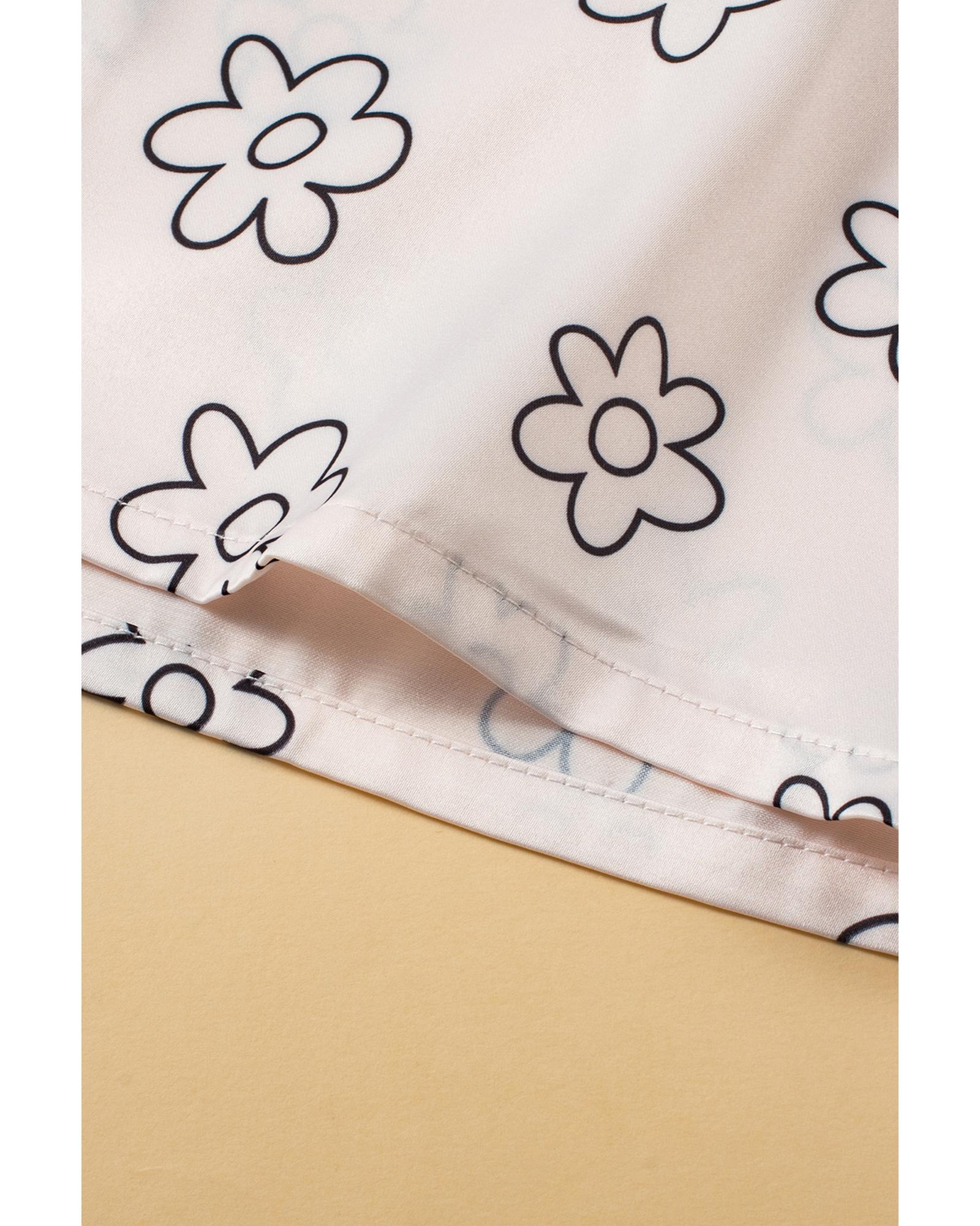 Pink Bow Print Half Sleeve Shirt and Shorts Pajamas Set - XL