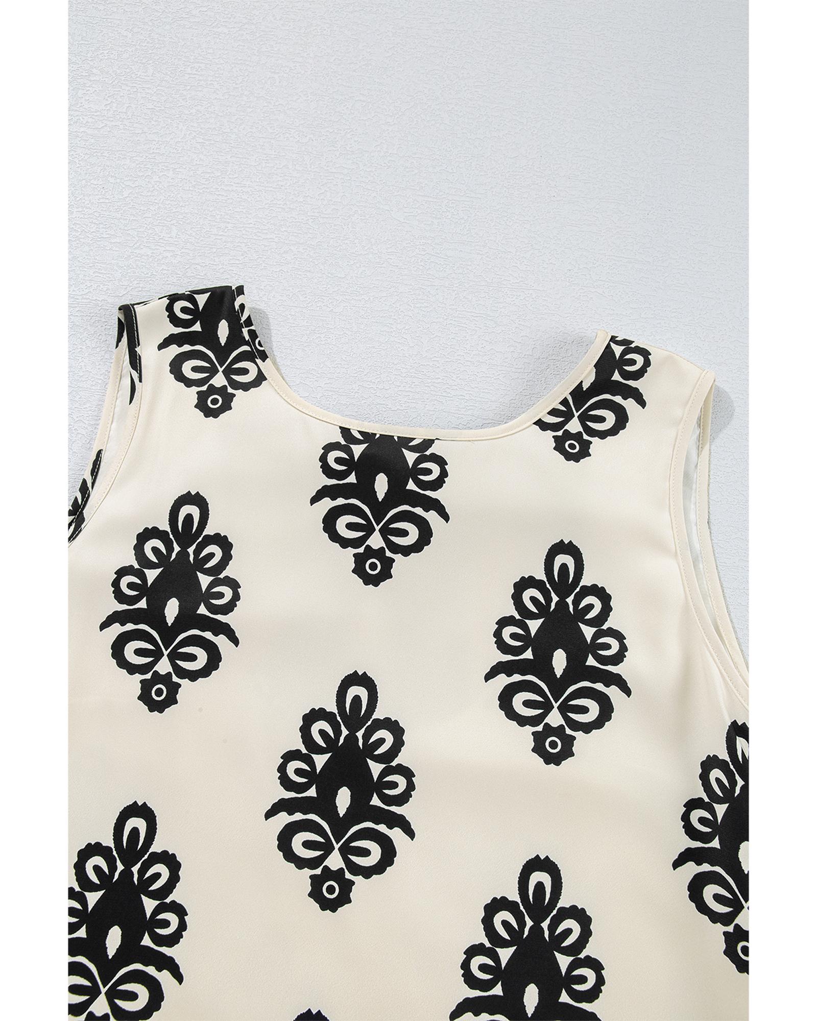 Beige Geometric Printed Sleeveless Hollowed Bowknot Back Mini Dress – L