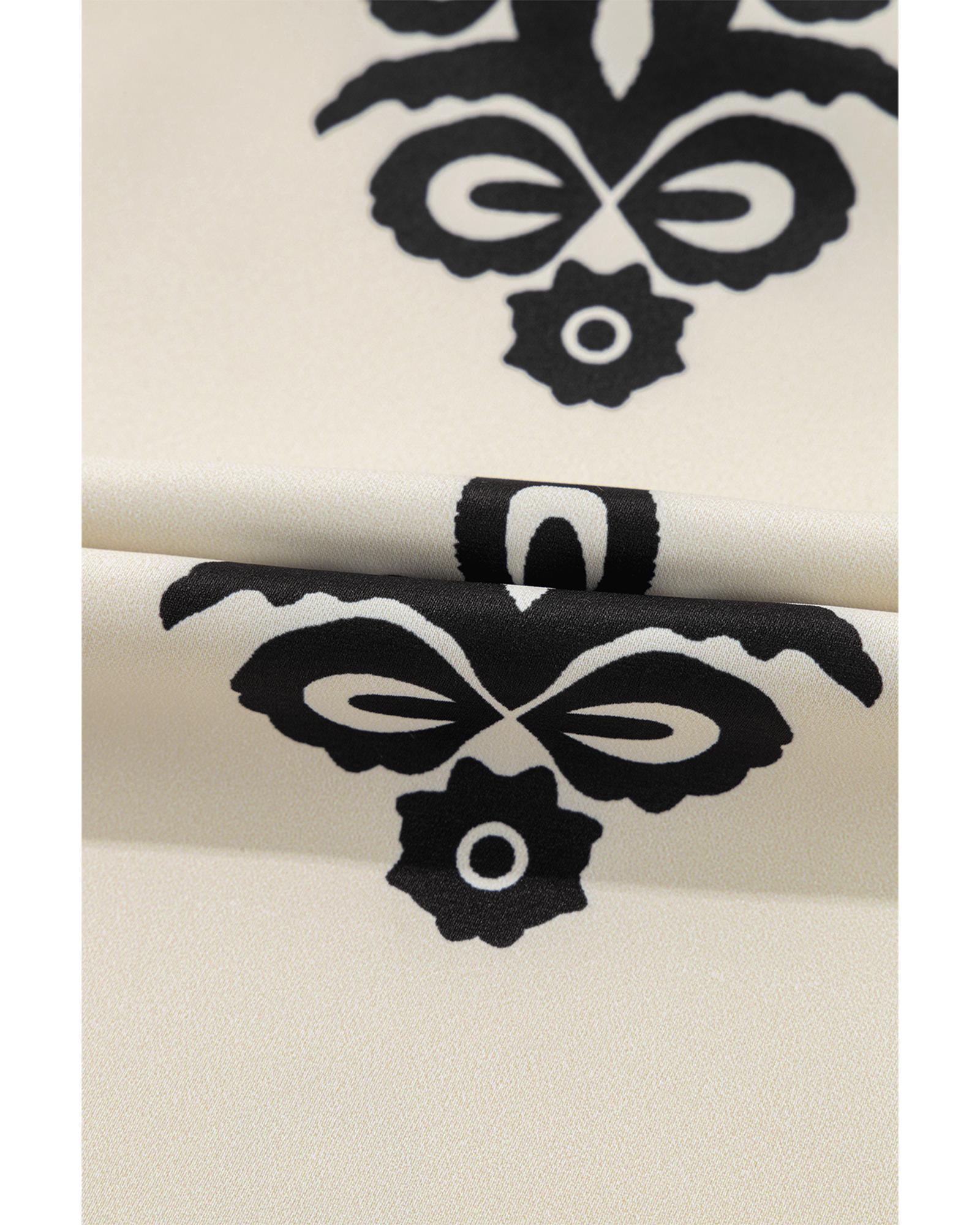 Beige Geometric Printed Sleeveless Hollowed Bowknot Back Mini Dress – S