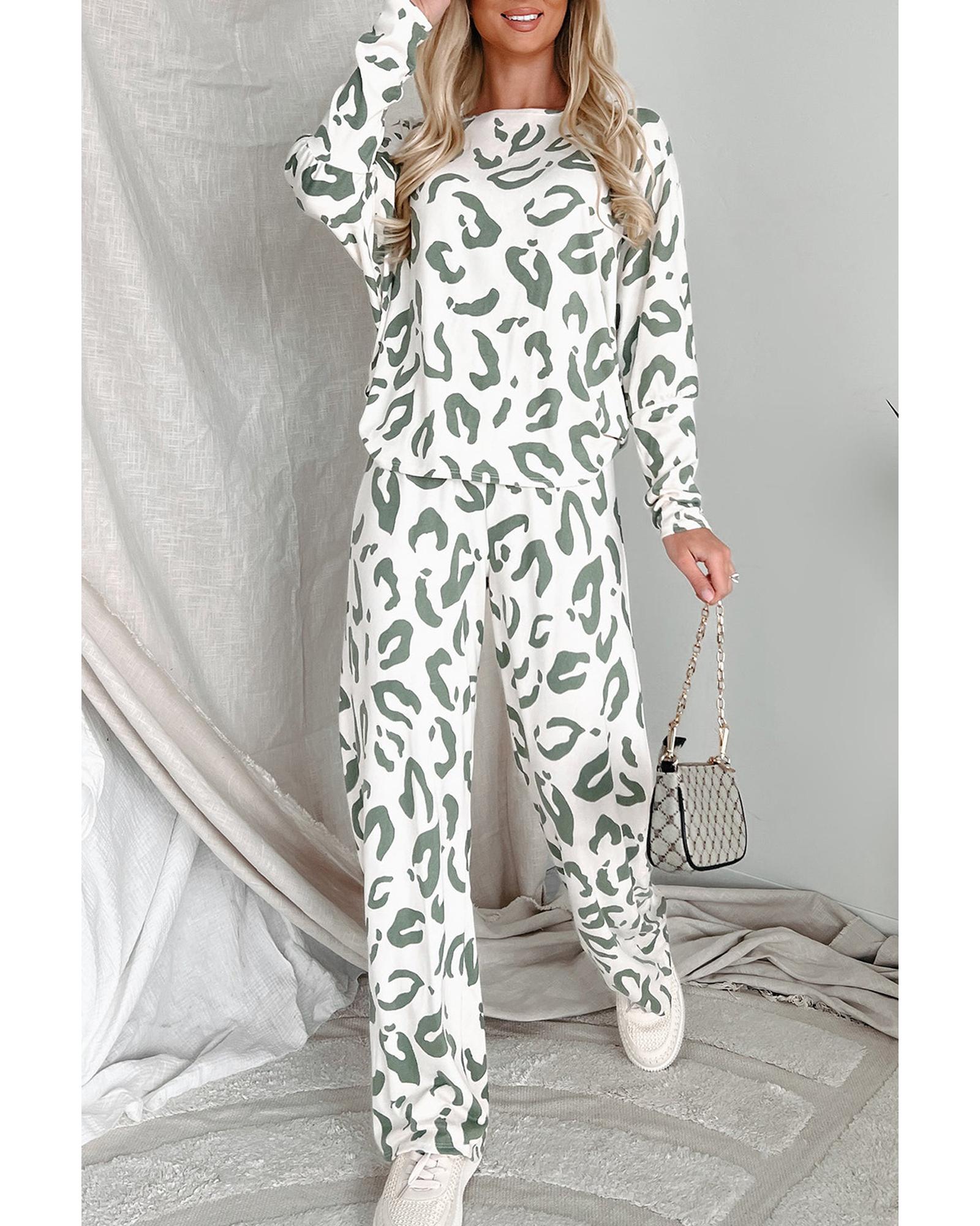 Beige Leopard Animal Print Long Sleeve and Pants Loungewear Set – XL