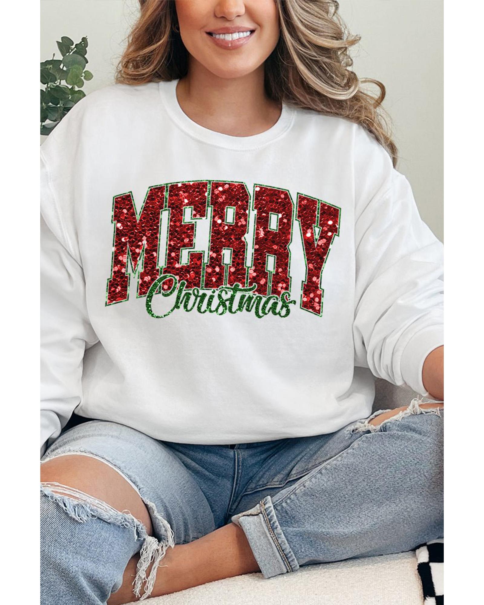 Beige MERRY Christmas Heat Transfer Printing Crewneck Pullover Sweatshirt – XL