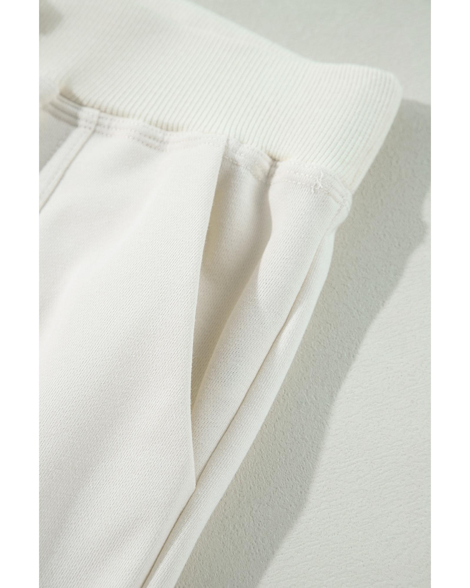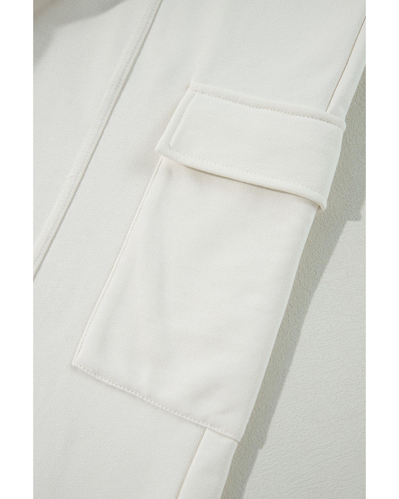 Beige Plain Cargo Pockets High Waist Casual Sweatpants – XL