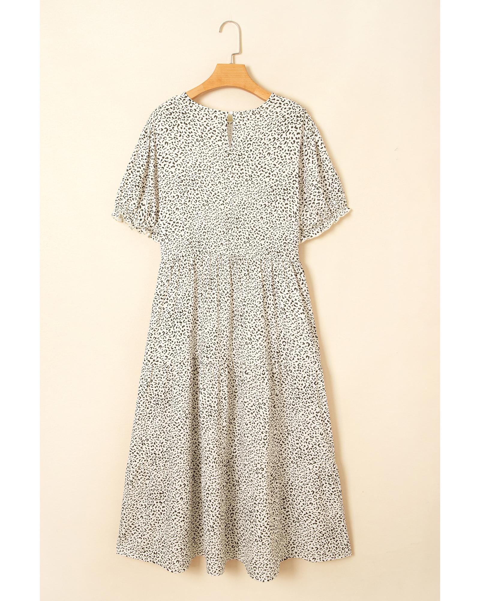Beige Plus Size Leopard Print Frill Trim Short Sleeve Flared Dress – 3X