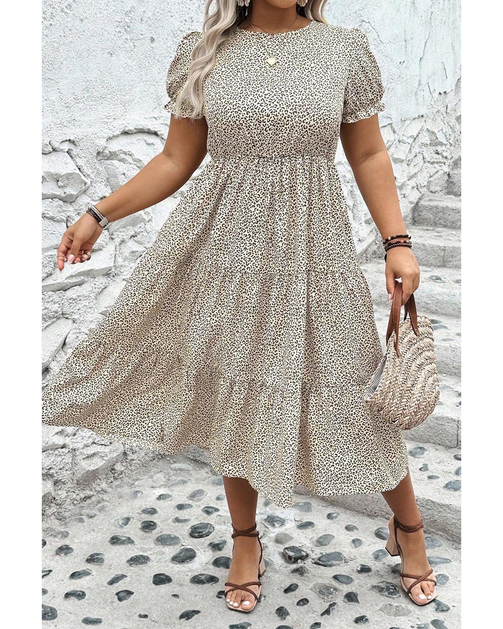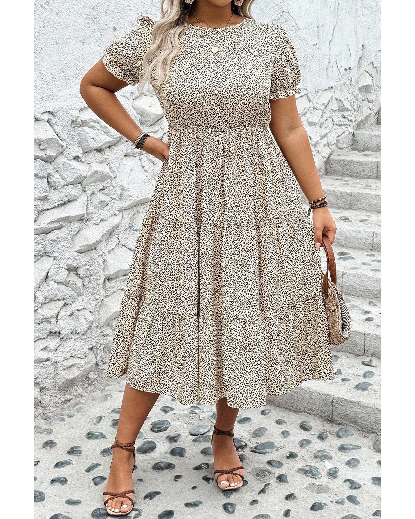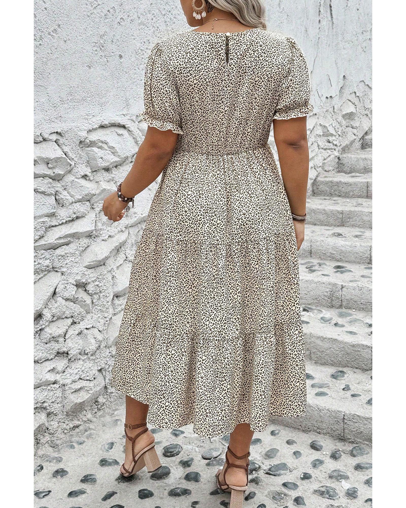 - Beige plus size dress with leopard print