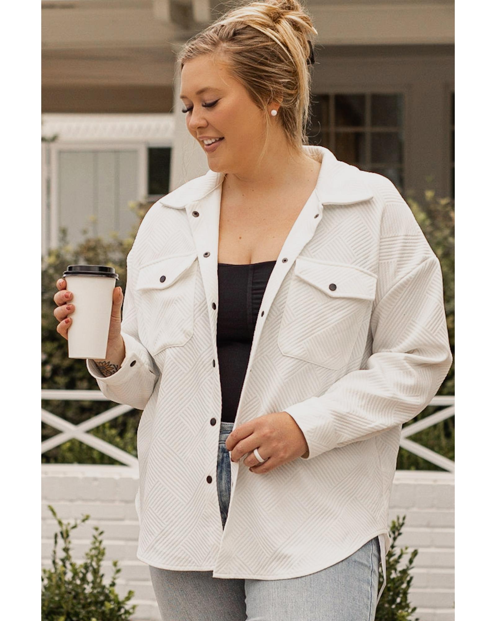 Beige Plus Size Textured Flap Pockets Jacket – 3X