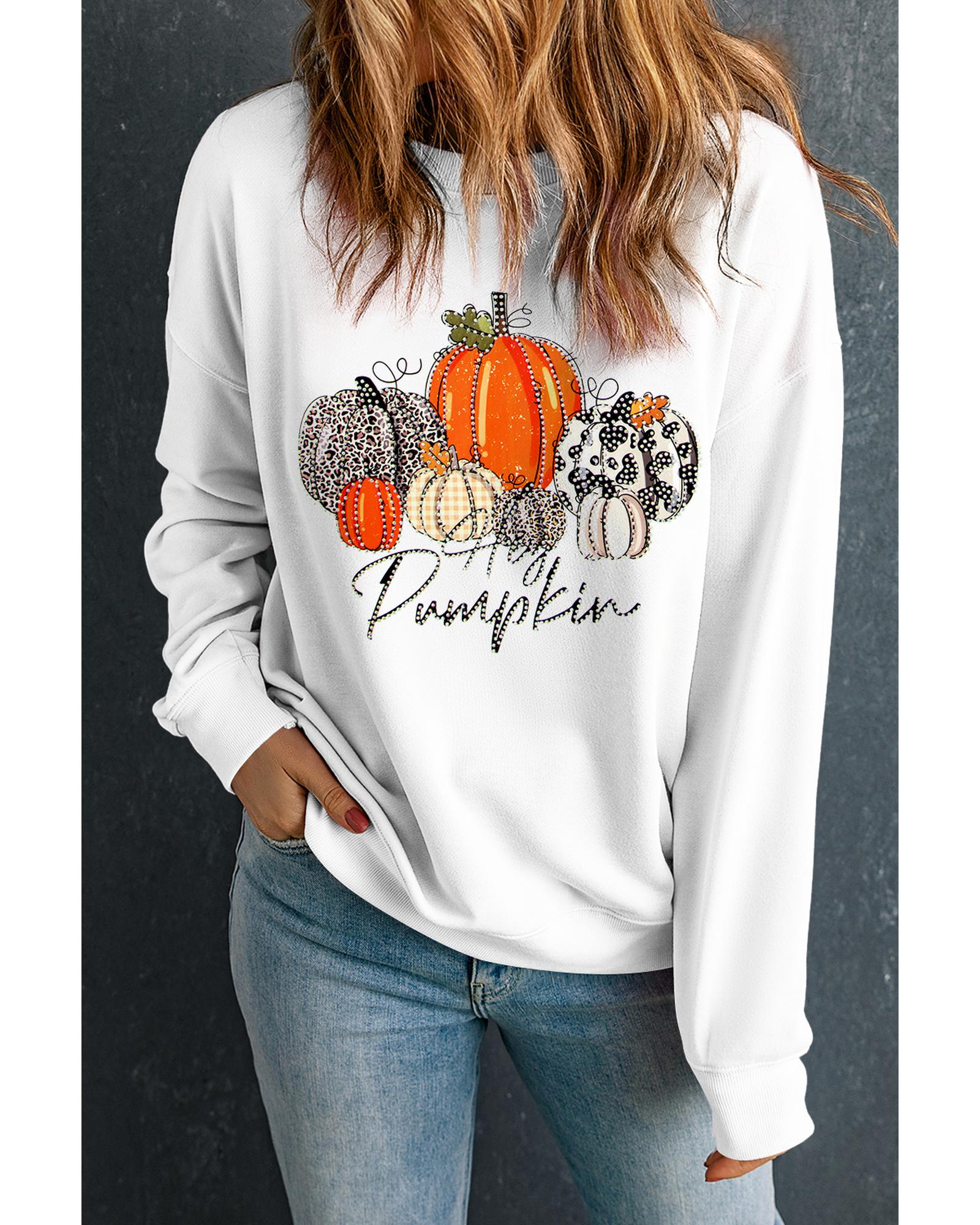 Beige Rhinestone Pumpkin Graphic Crewneck Thanksgiving Sweatshirt – 2XL