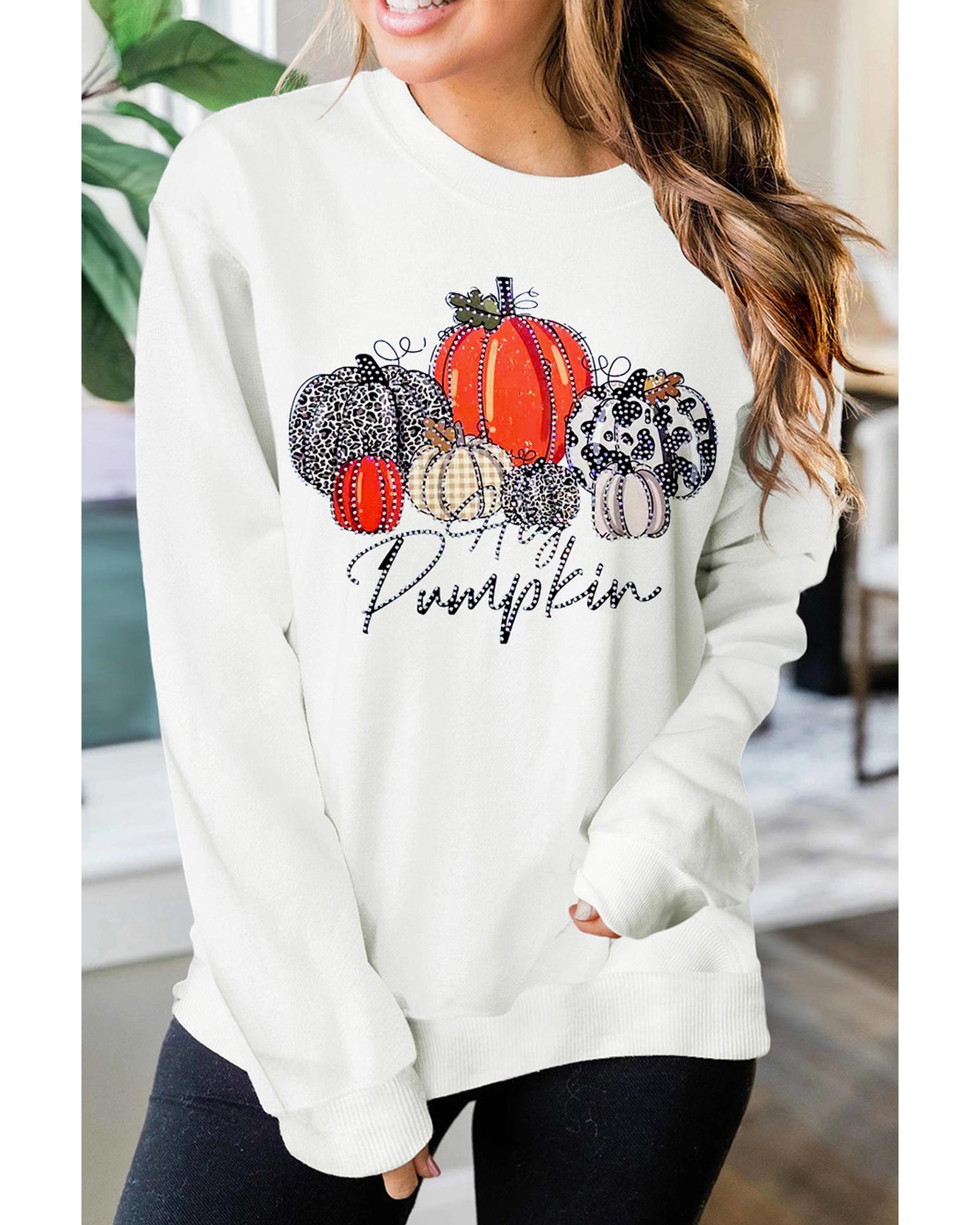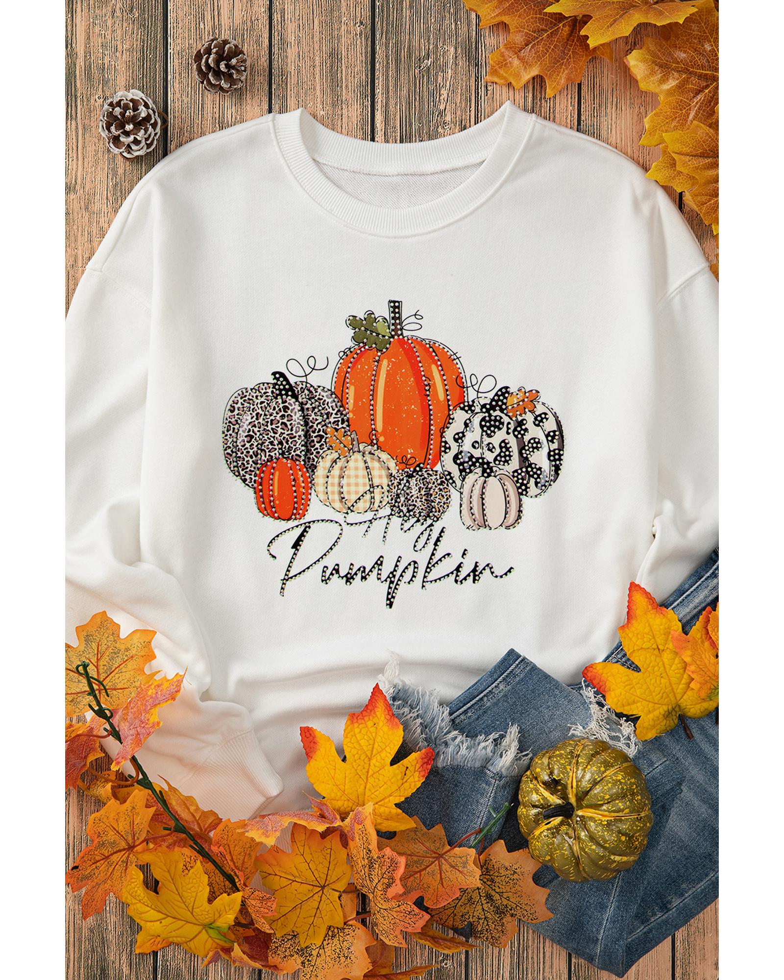 Beige Rhinestone Pumpkin Graphic Crewneck Thanksgiving Sweatshirt – L