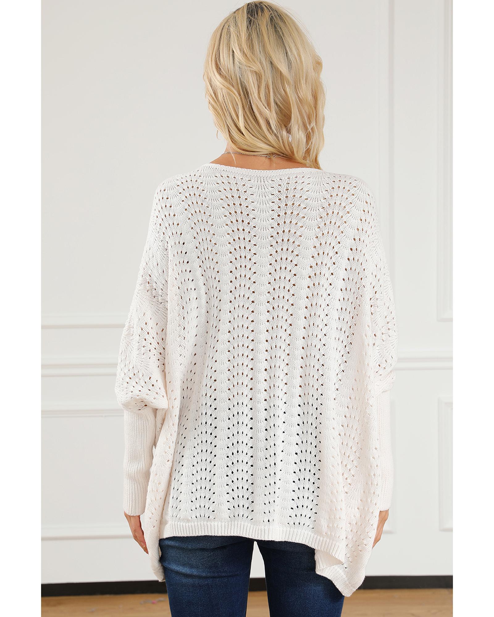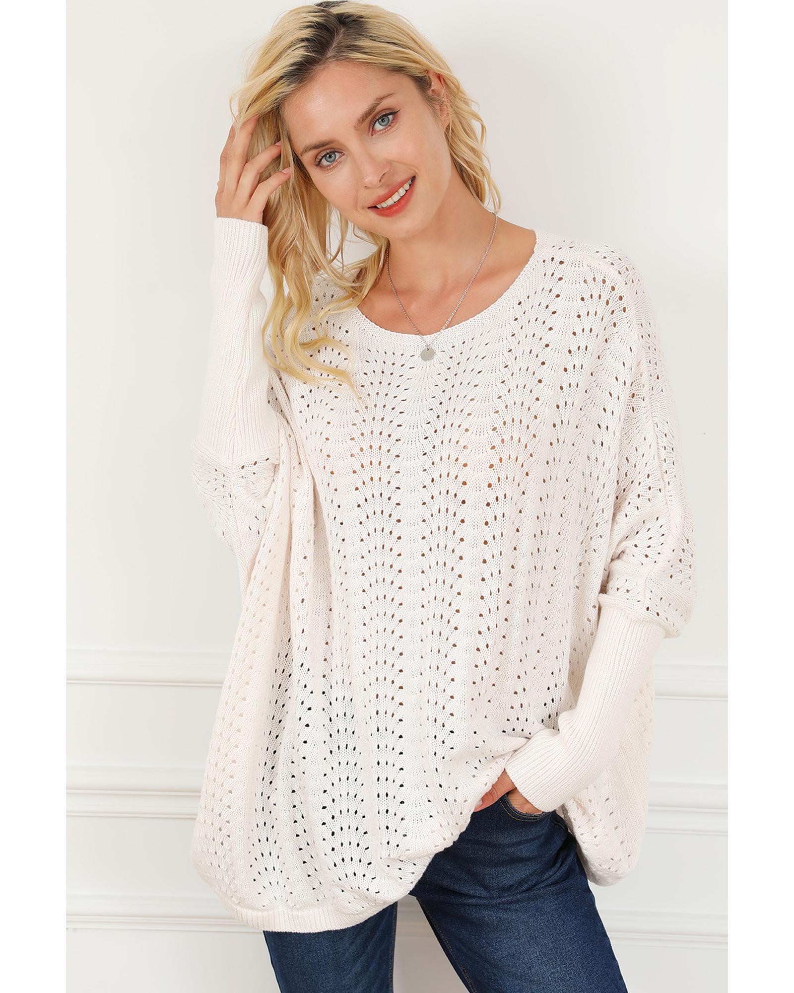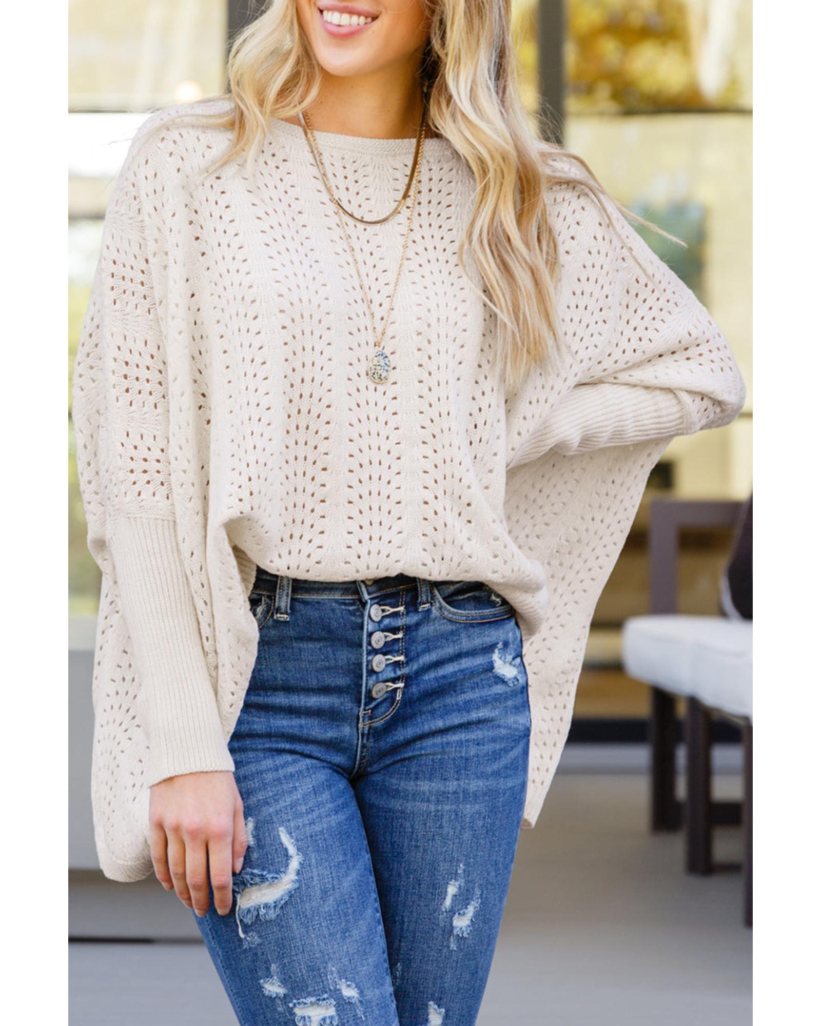 Beige Ribbed Hollow Knit Dolman Sleeve Sweater – XL