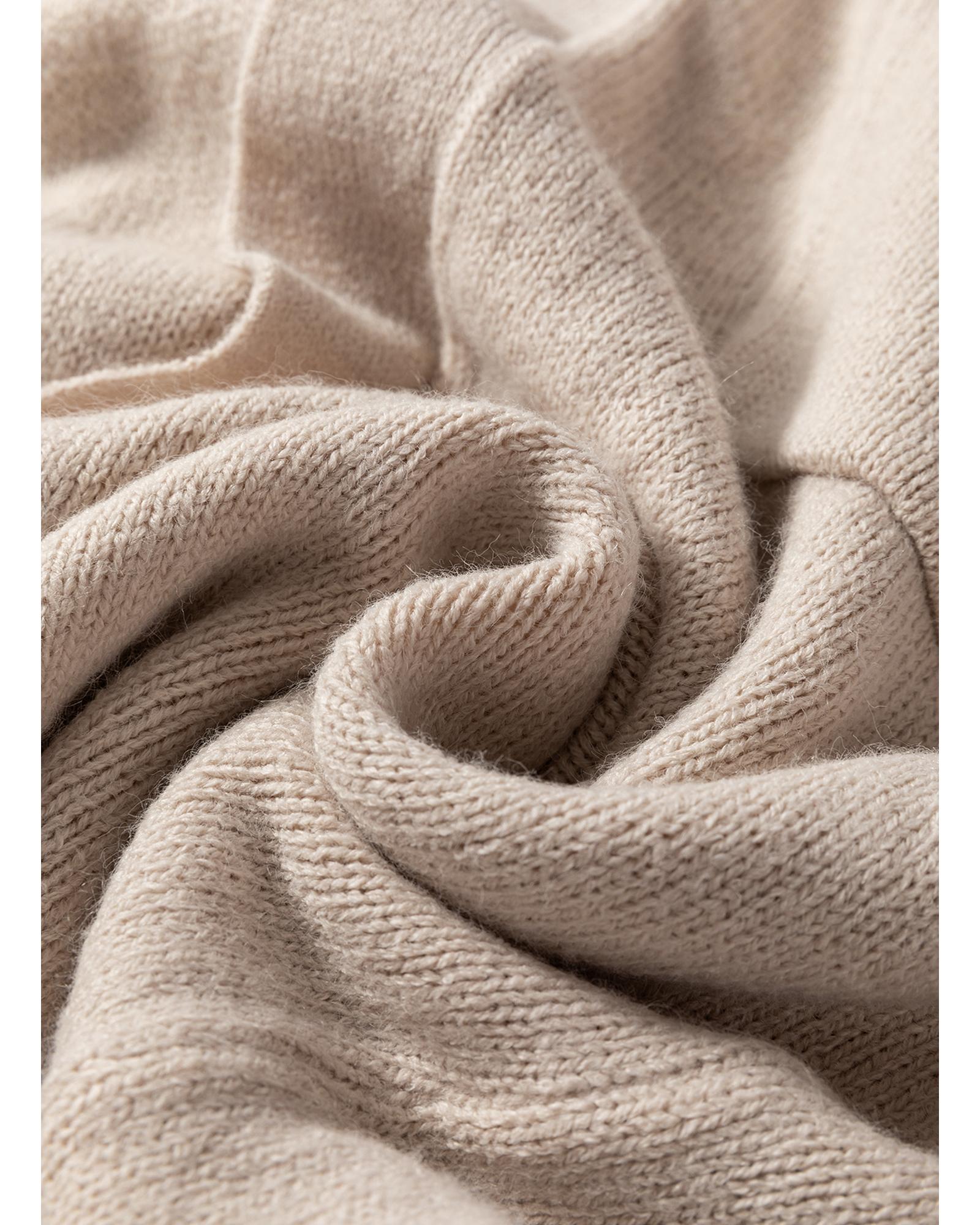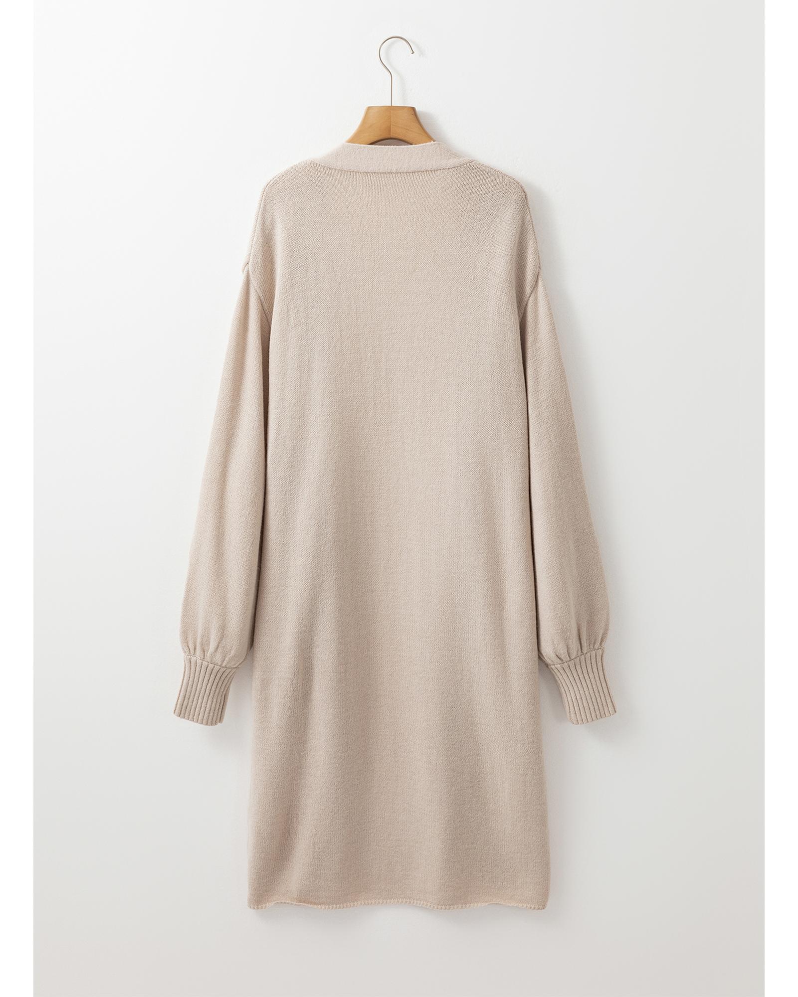 • Beige Side Pockets Open Front Long Knitted Cardigan
