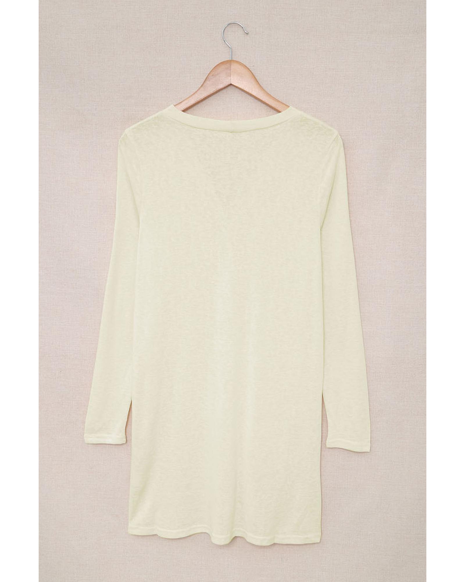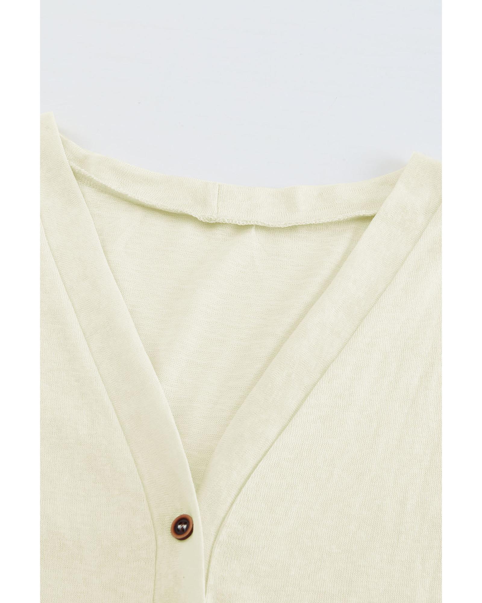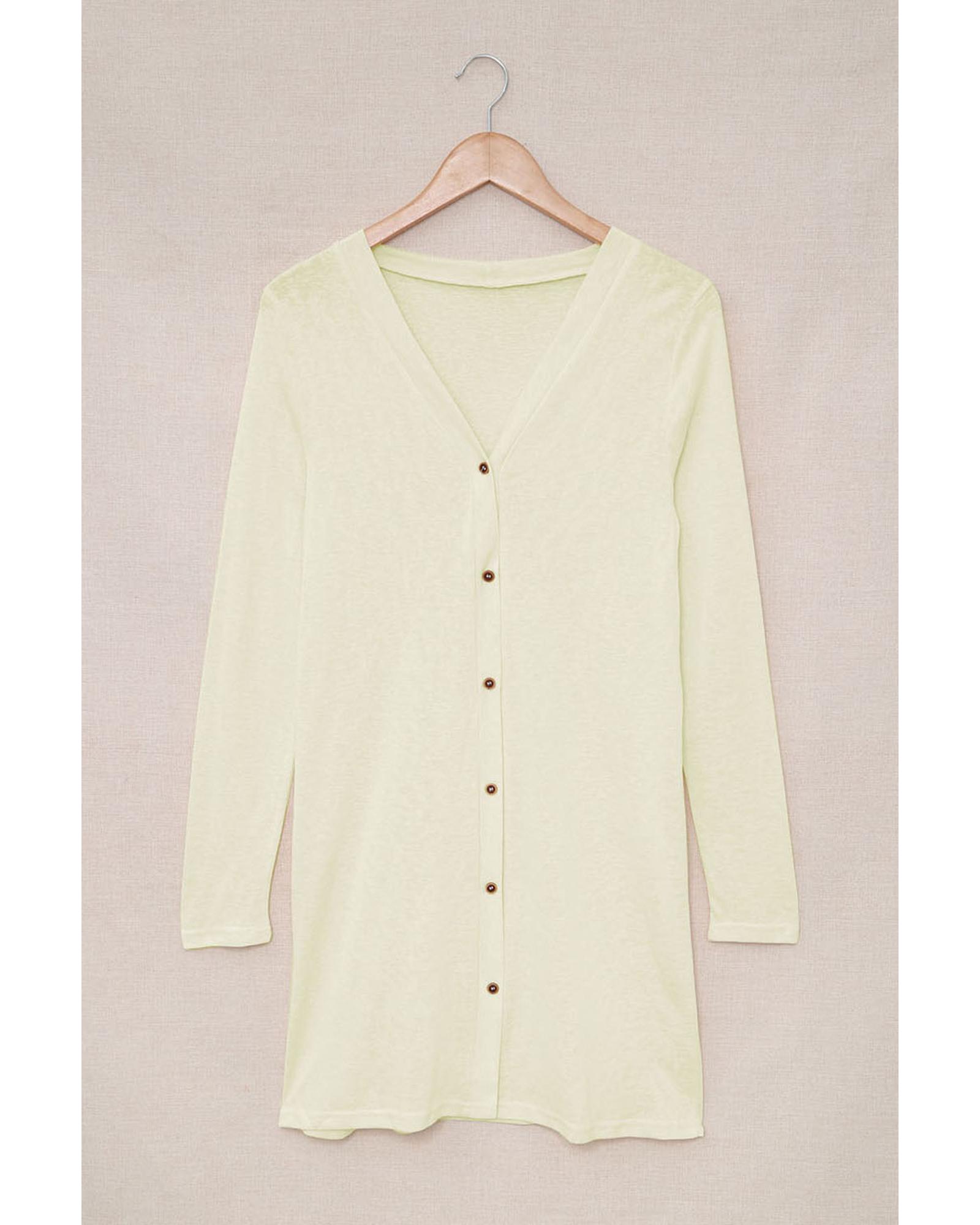 Beige Solid Color Open-Front Buttons Cardigan – M