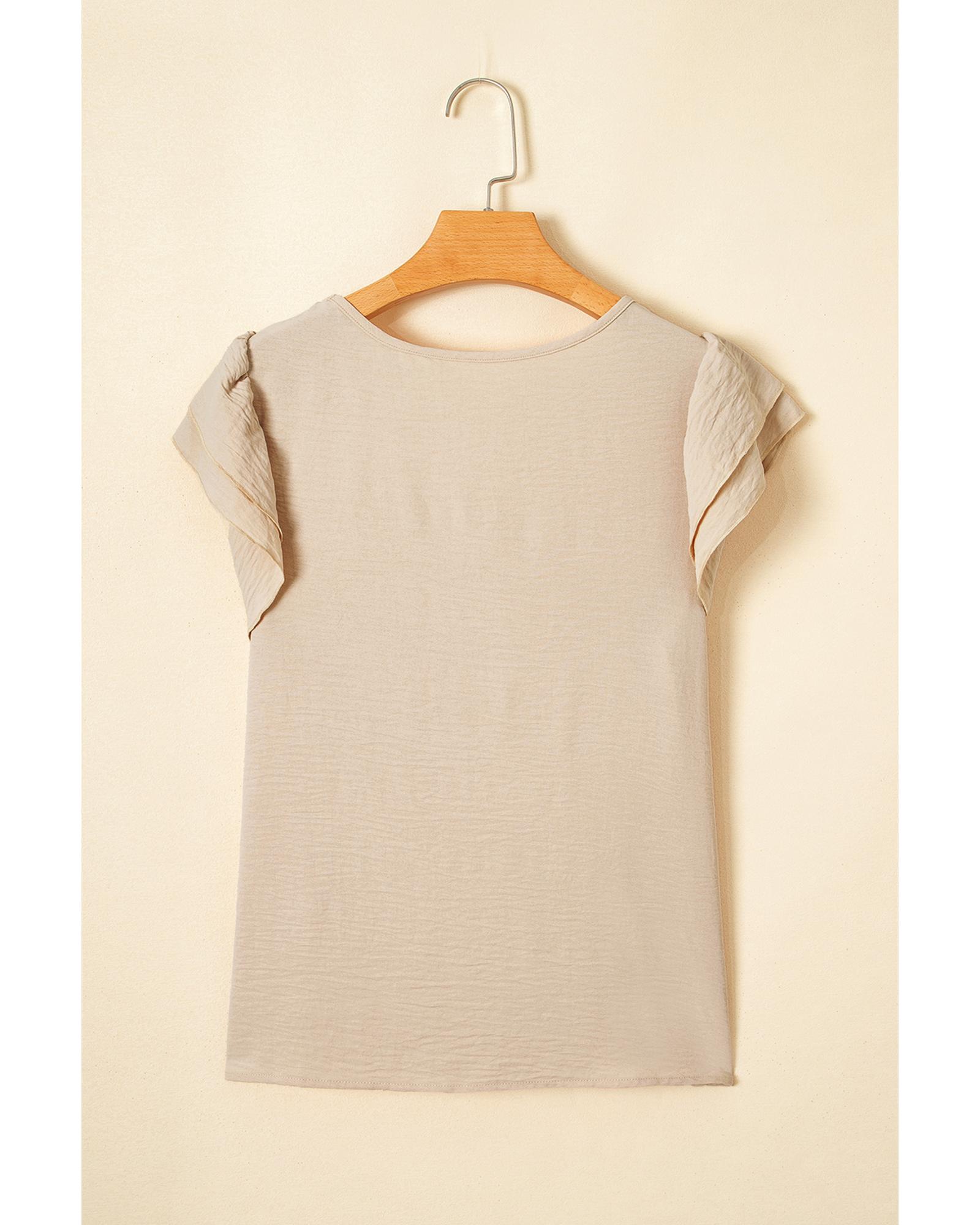 Beige Solid Color Ruffled Short Sleeve Casual Blouse – L