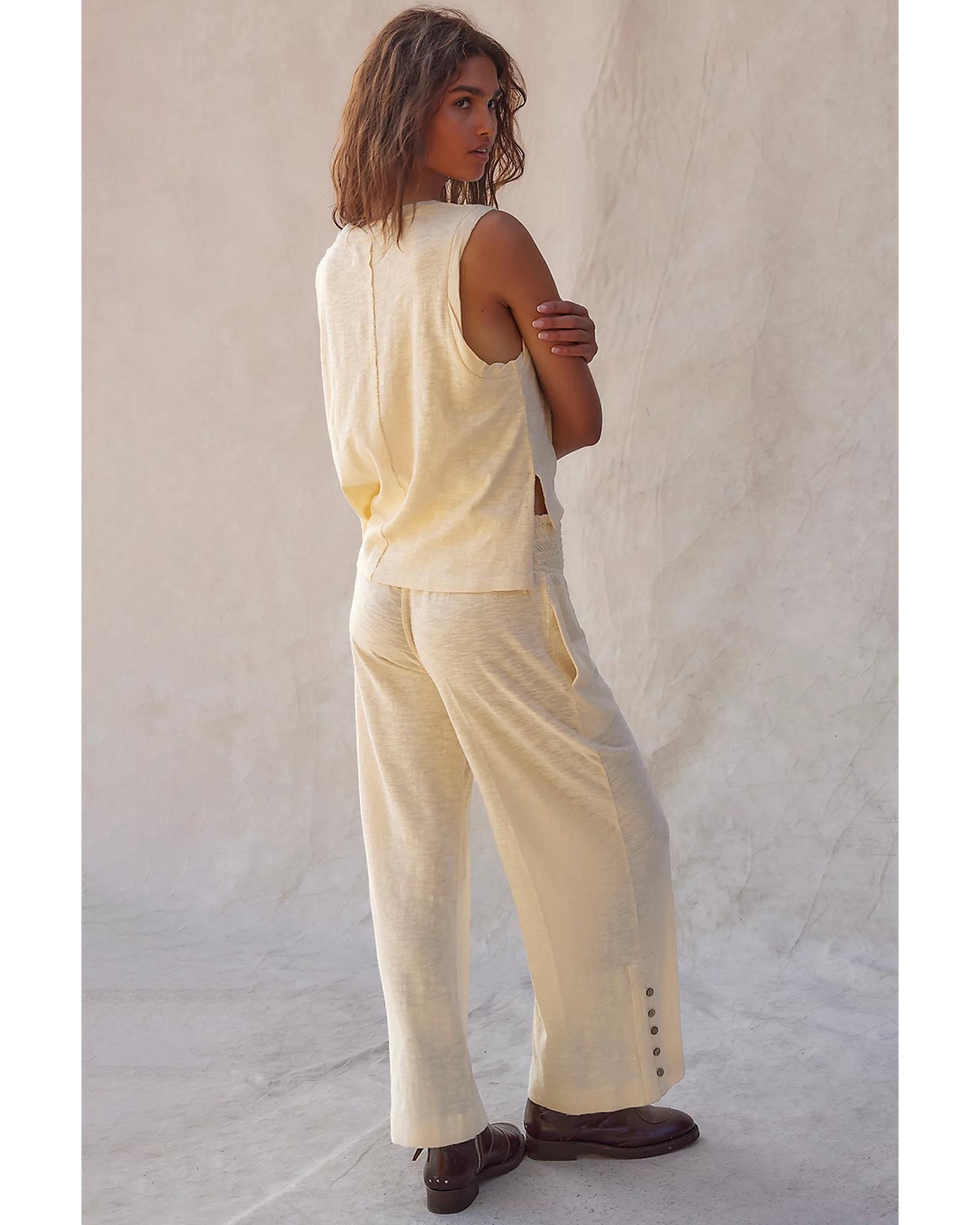 • Beige solid color tank top and smocked waist pants set