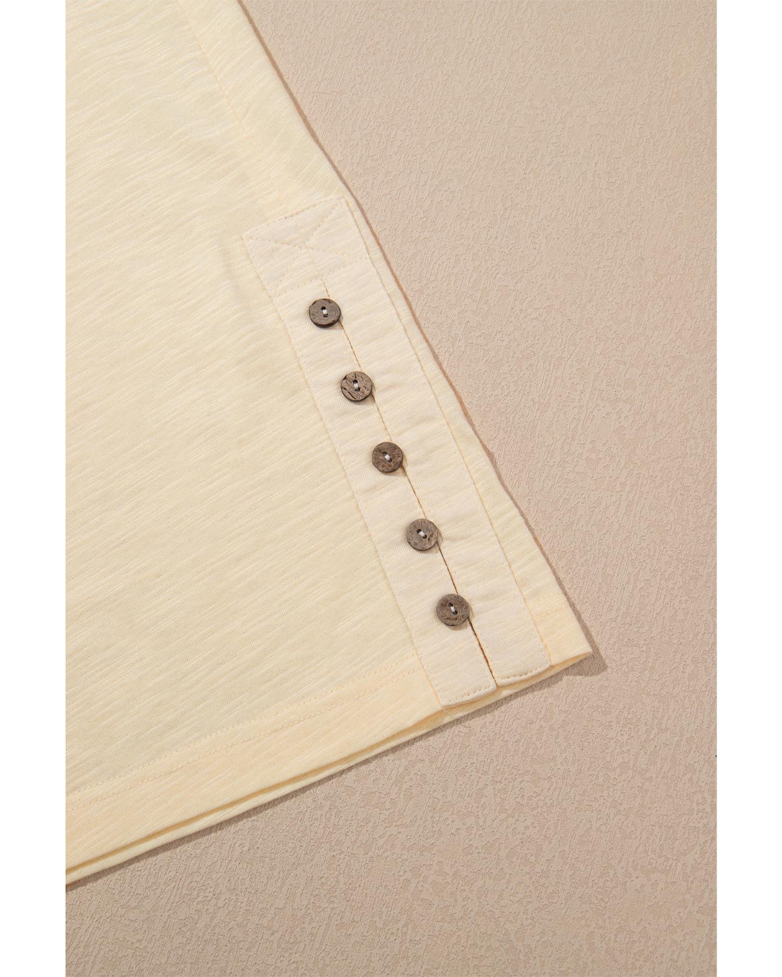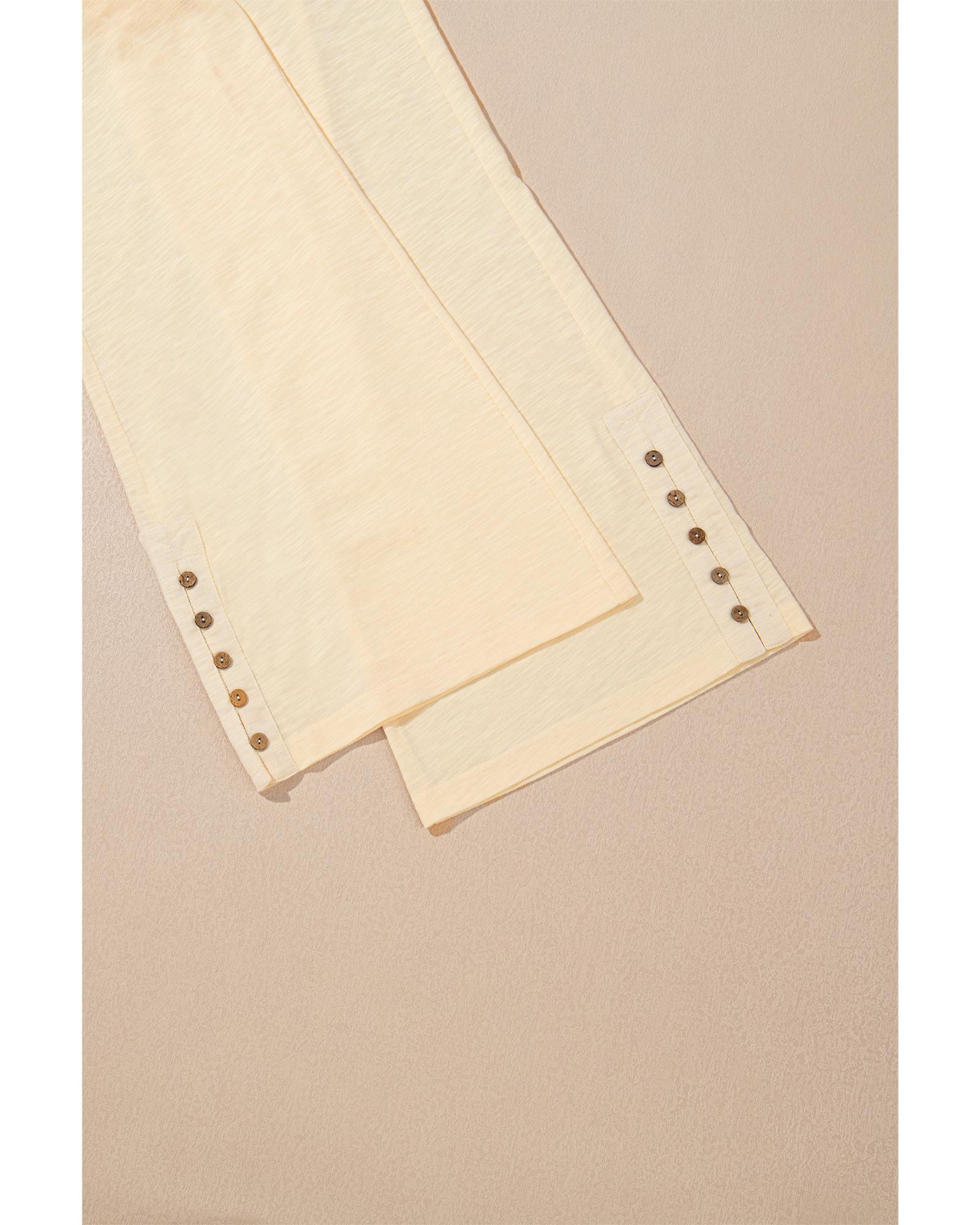 Beige Solid Color Tank Top and Smocked Waist Pants Set – S