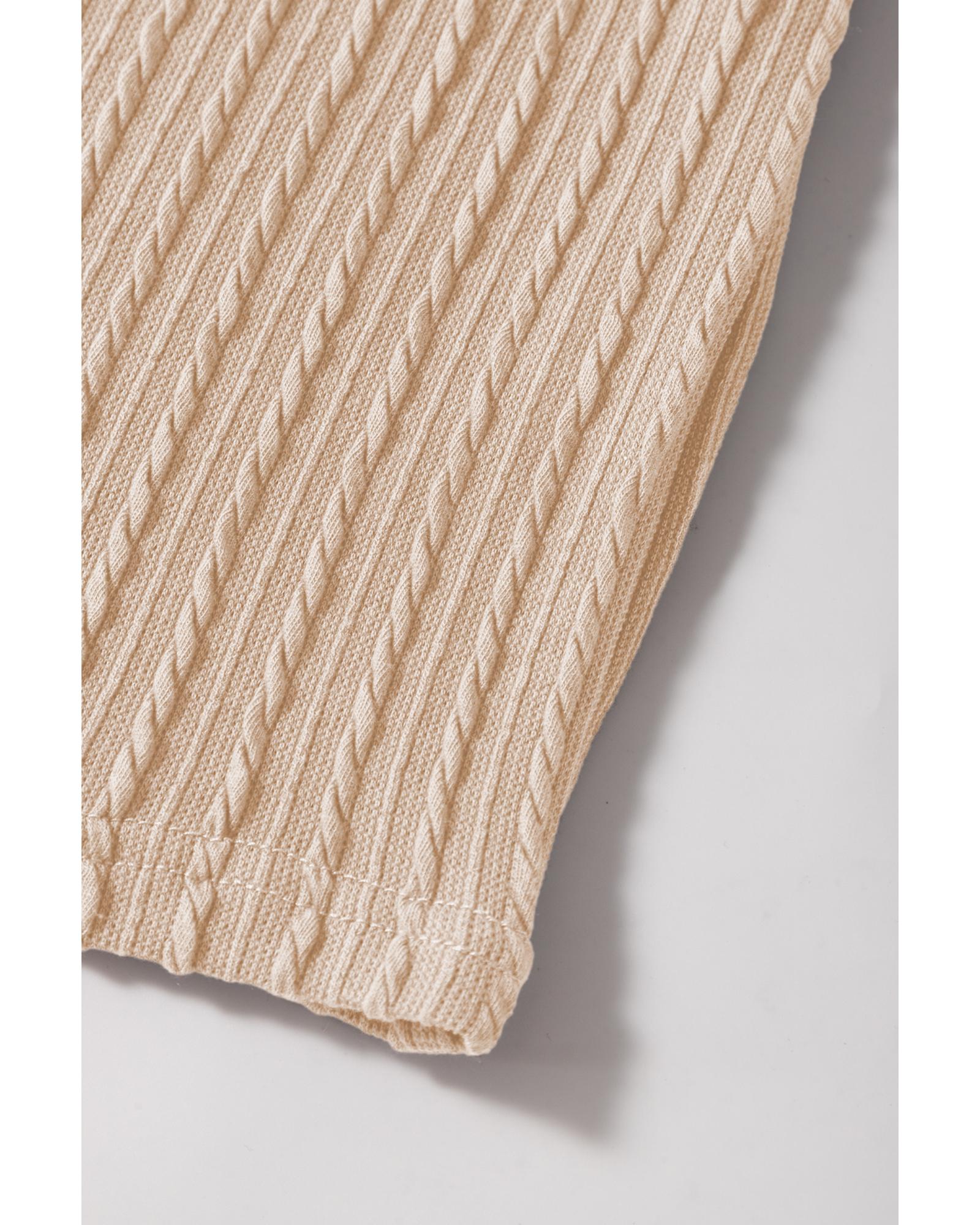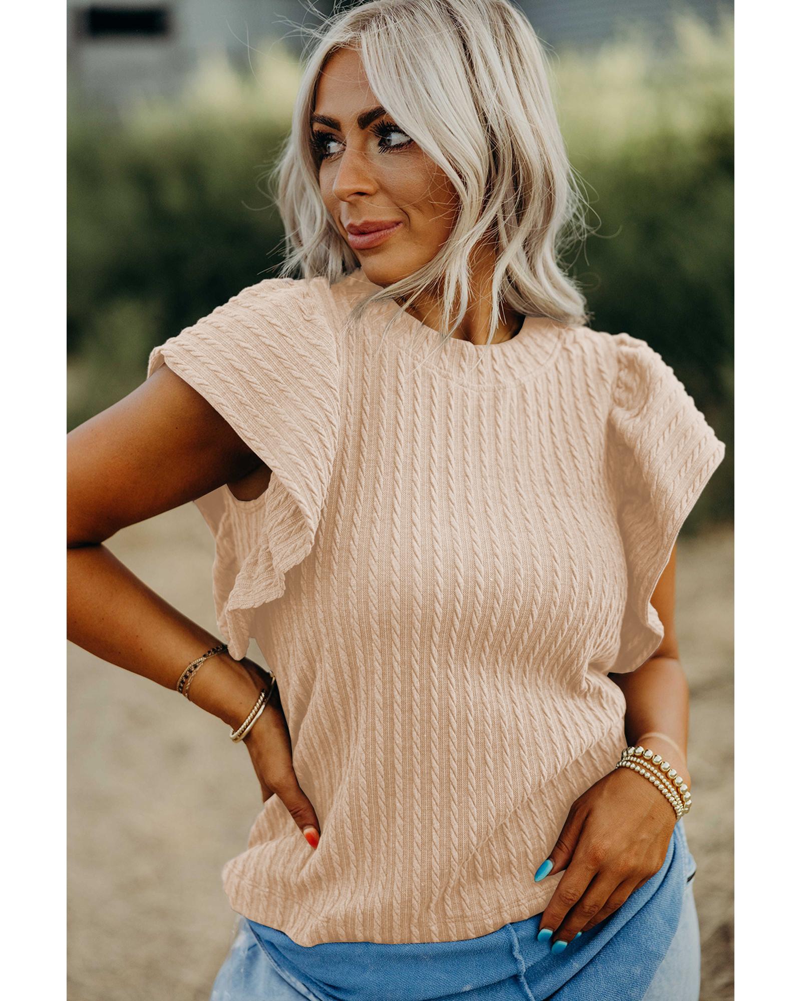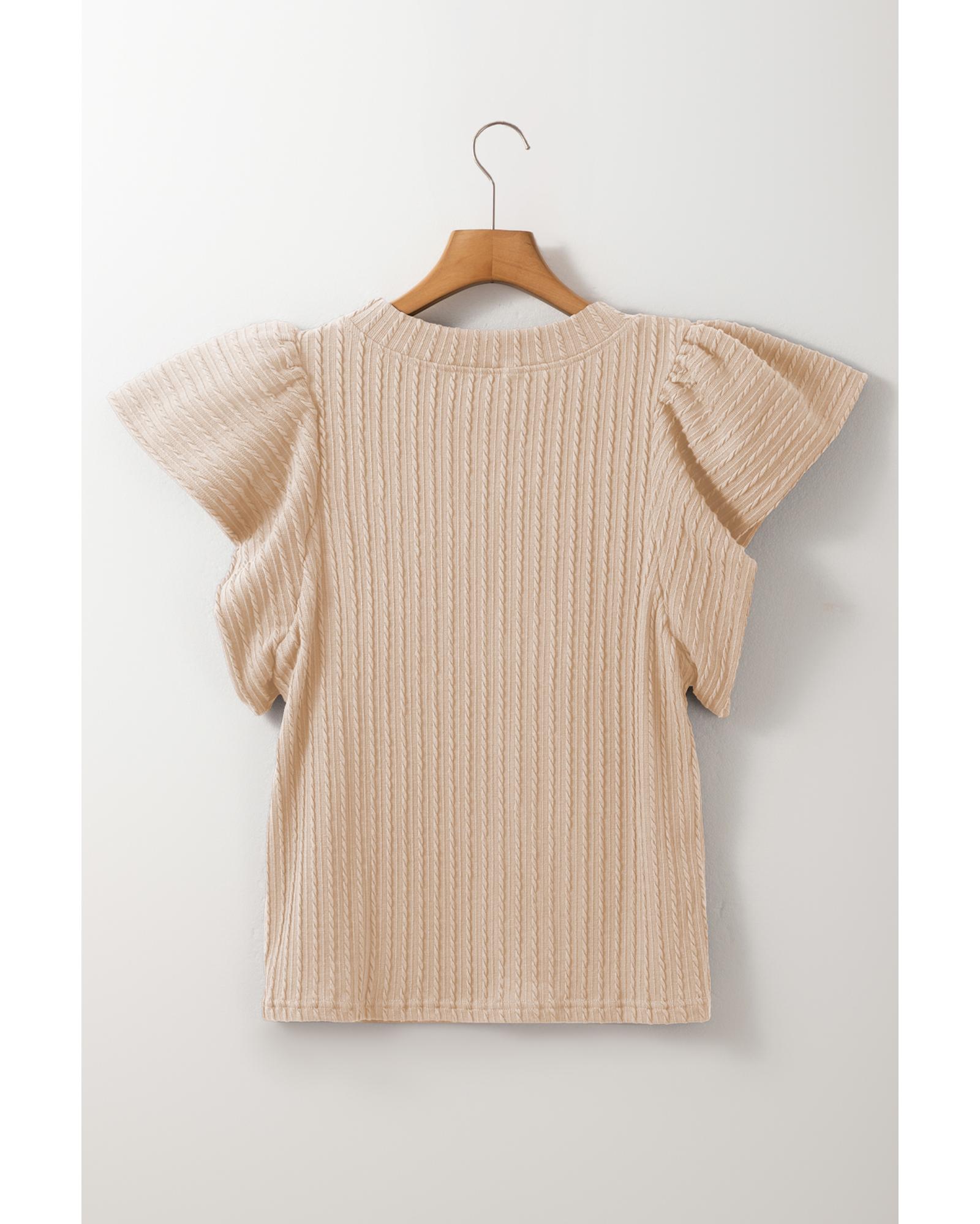 Beige Solid Color Textured Flutter Sleeve Top – XL