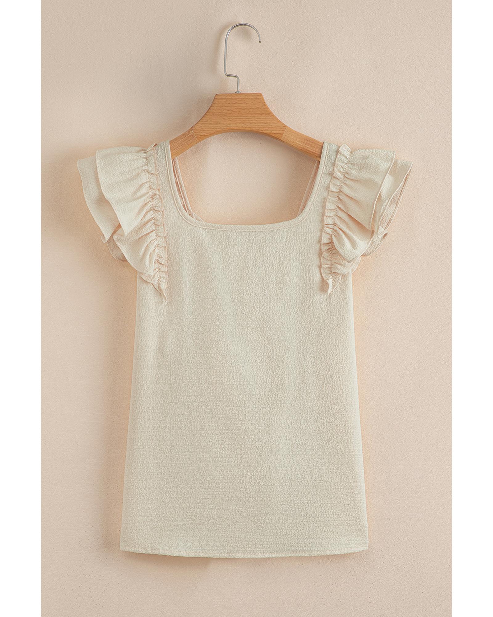 Beige Textured Bow Knot Frilled Butterfly Sleeve Blouse – M