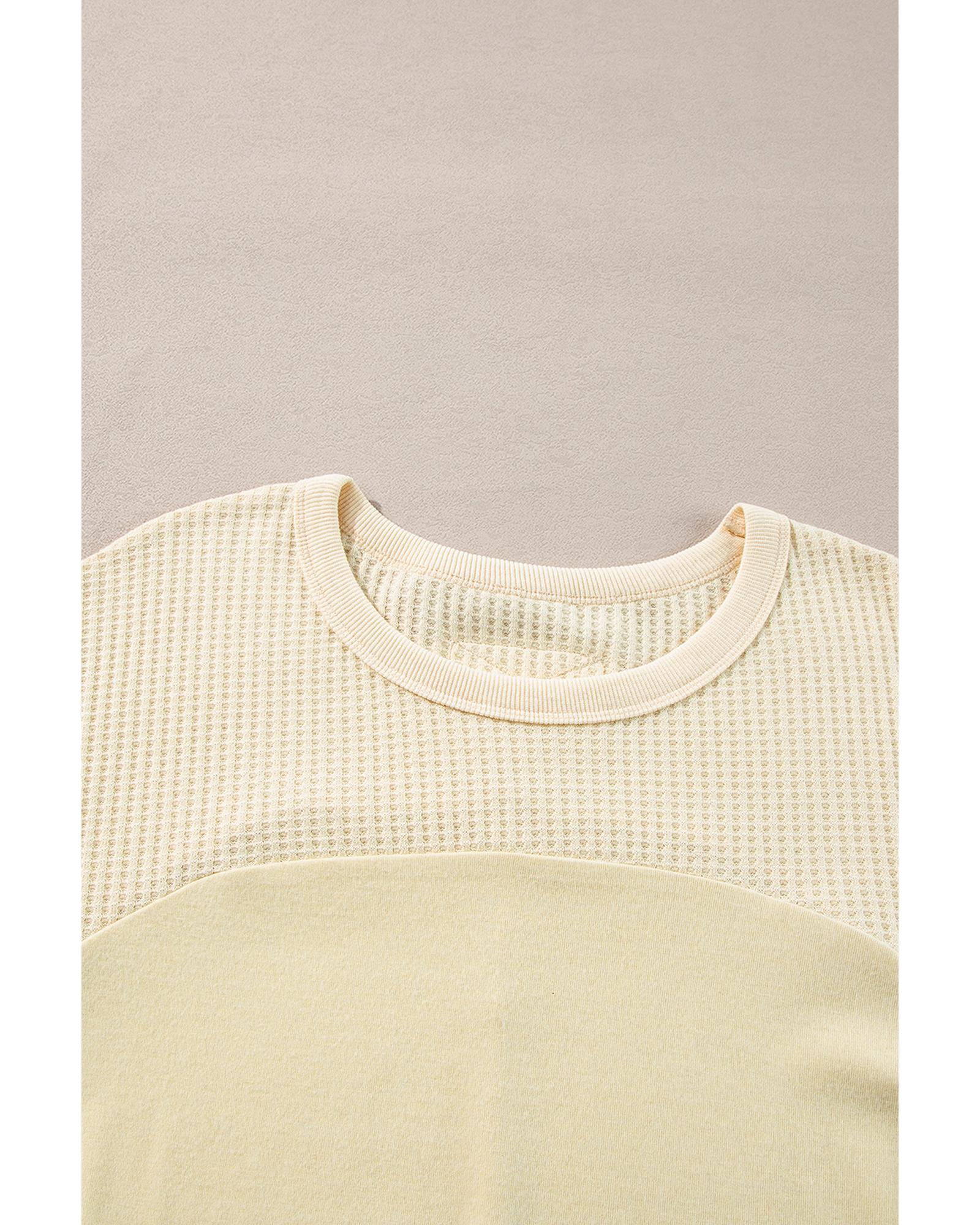 Beige Thermal Knit Patchwork Exposed Seam Long Sleeve Top – S