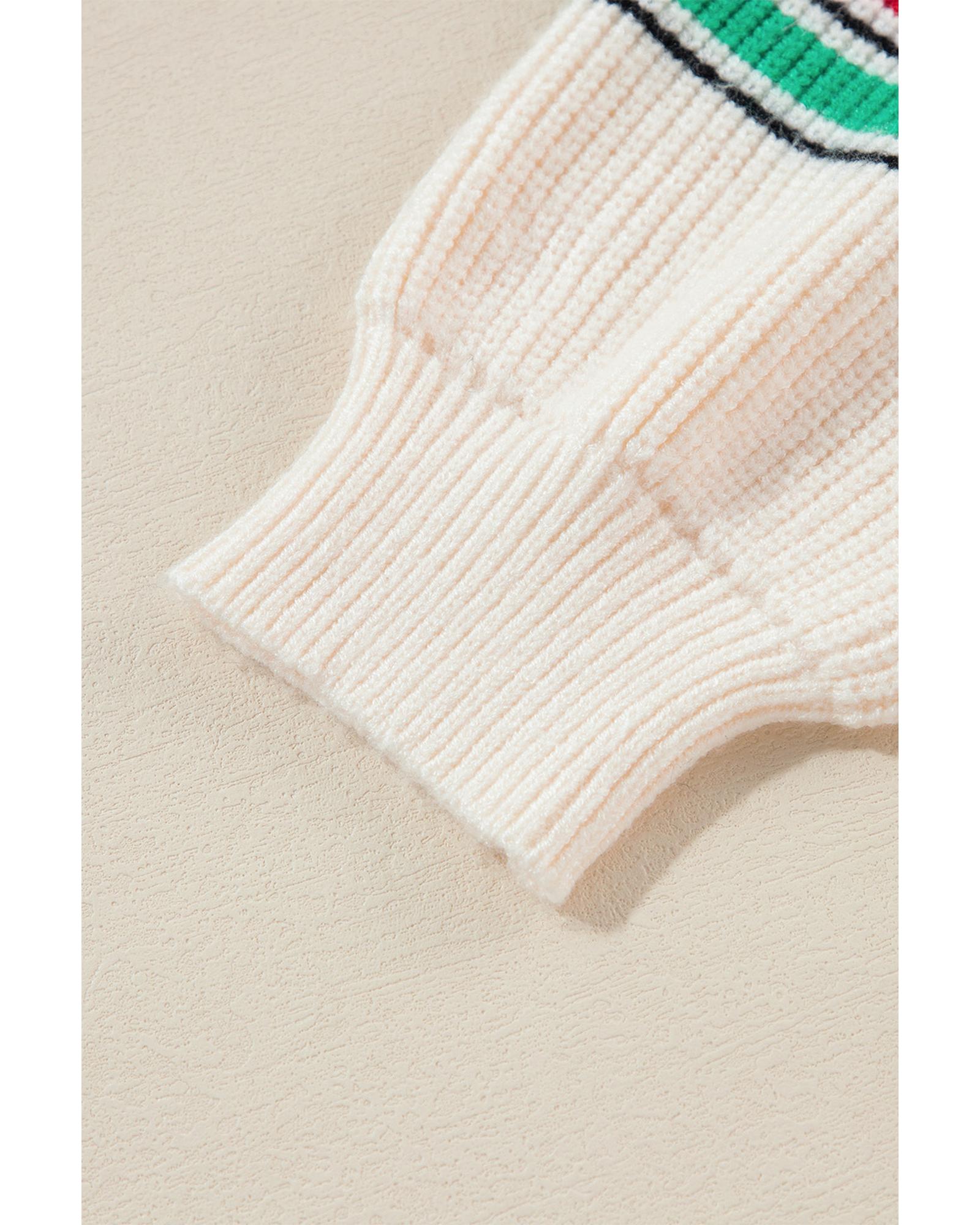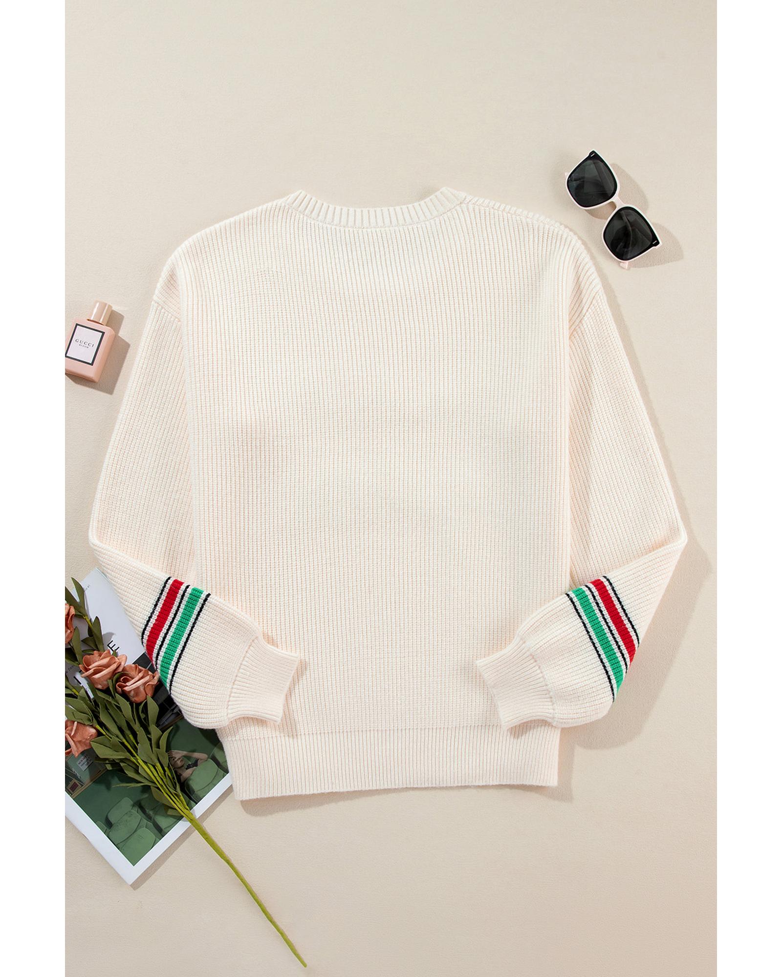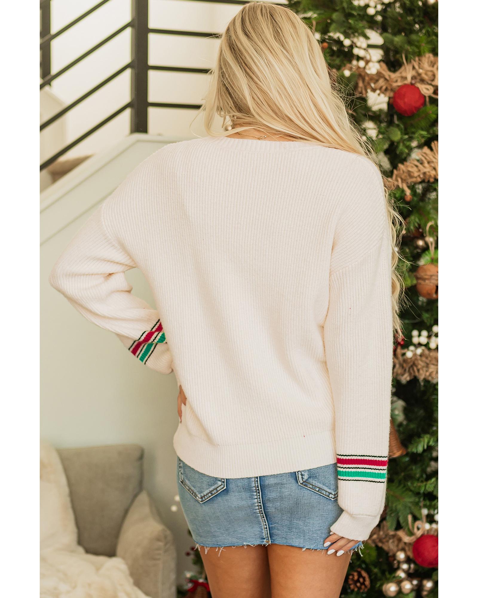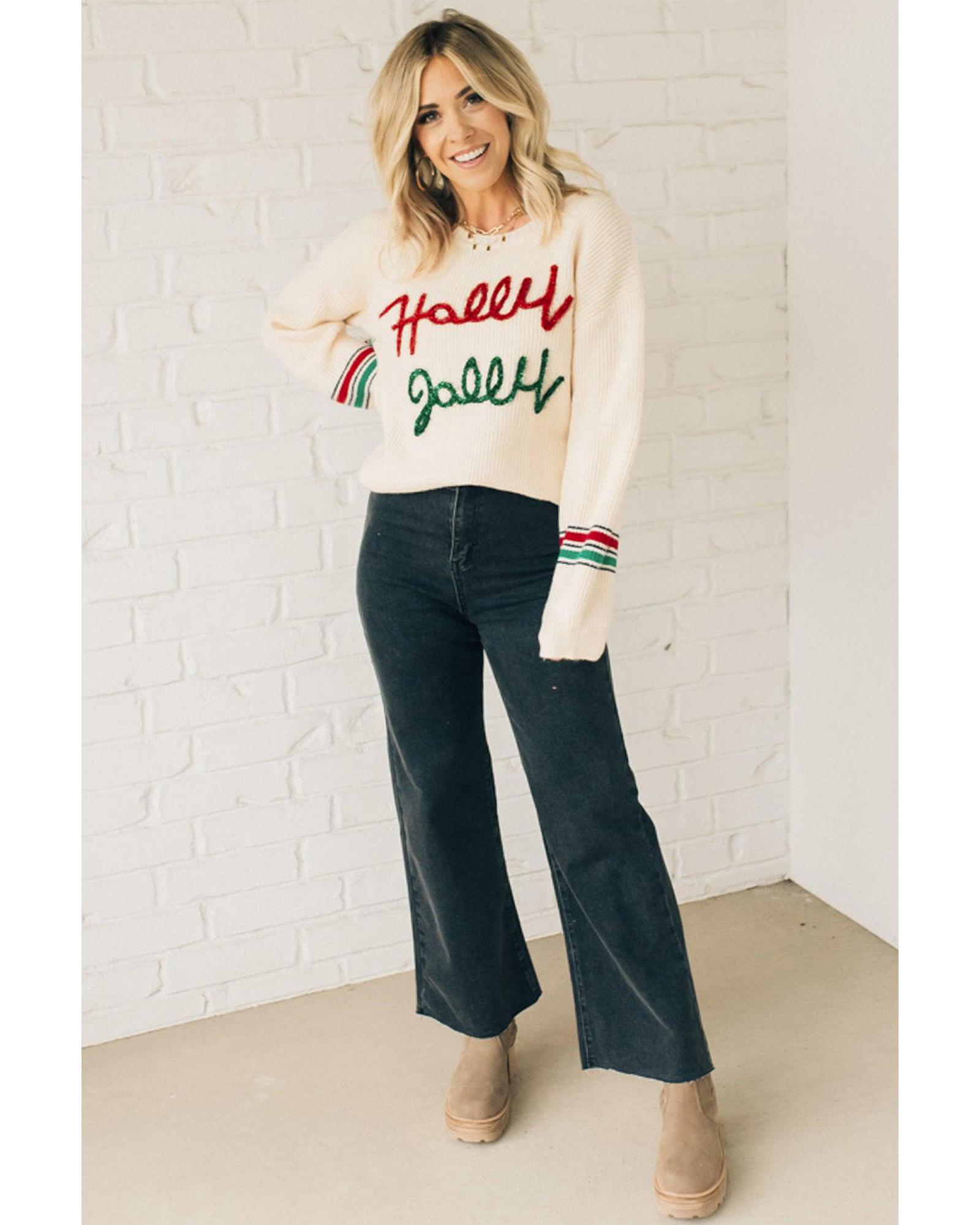 Beige Tinsel Holly Jolly Graphic Classic Sweater – L