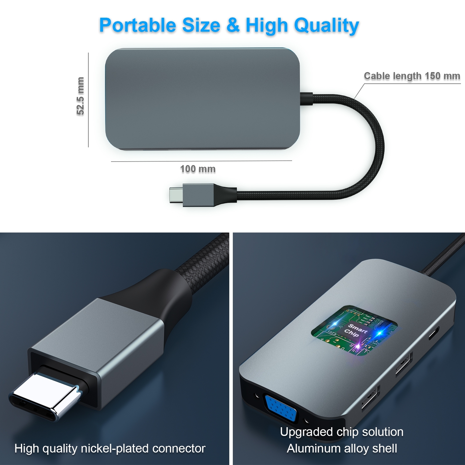 Add 2 x HDMI port, 1 x VGA port, 3 x USB 3.0 ports, 1 x 100W Power Delivery Ports, 3.5mm AUX slot to your USB-C laptop all from a single USB-C port. Tuck this lightweight gadget into your bag or pocket to do a business presentation with your laptop and projector, or extend your desktop screen to a monitor or TV;