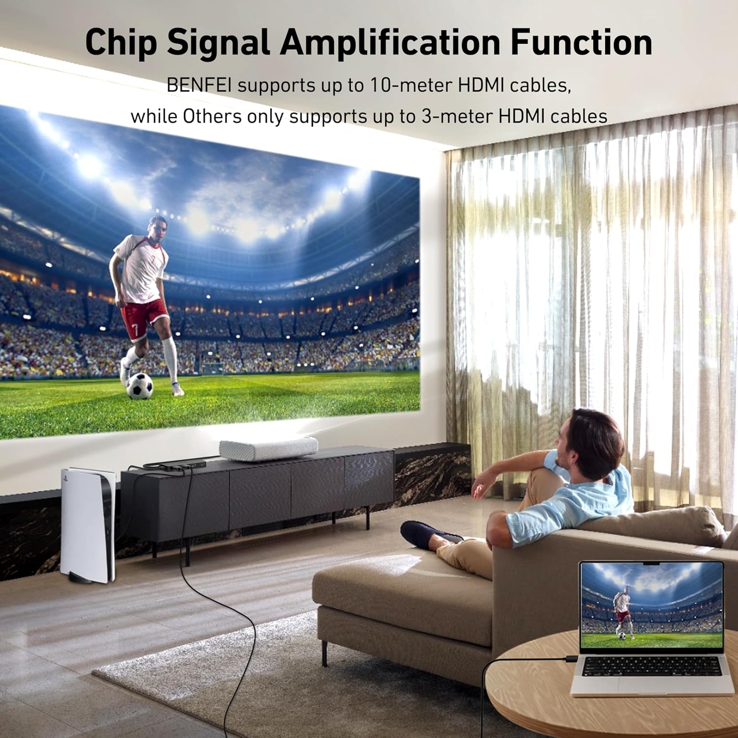 BENFEI 4-In-1-Out HDMI Switch provides an ideal solution for multiple HDMI source, without constantly cable switching, just press and switch between your HDMI source smoothly. Plug the 4ft HDMI cord to your monitor, you can easily put HDMI switch in your proper position, connect 4 of your favorite gaming devices such as PS5, Xbox, Switch, Roku, and laptop to your TV.