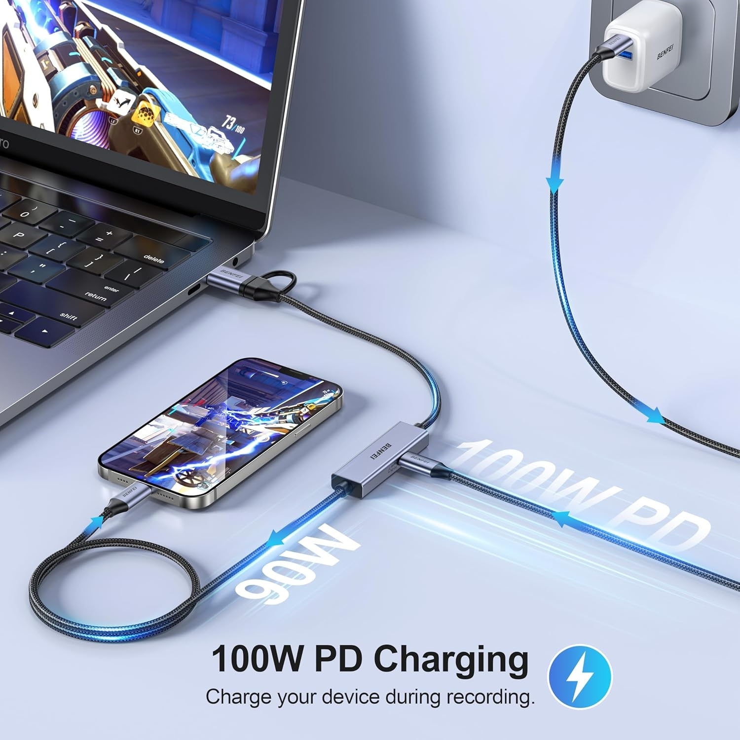 BENFEI 408GY USB-C to USB-C+A + PD (100W) Video/Audio Capture Card Supporting Full HD 1080P 60FPS for Streaming, Recording, Gaming