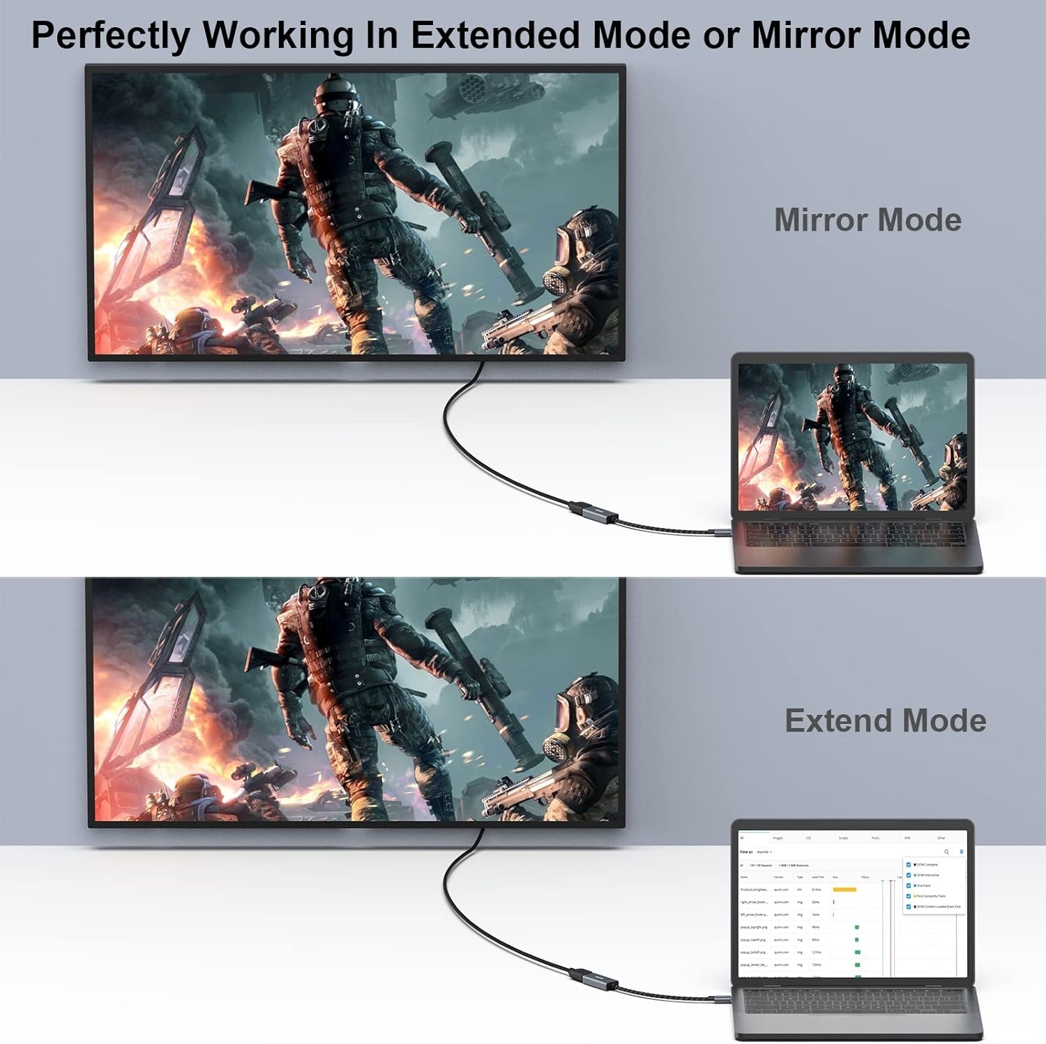 Built-in advanced IC chip converts USB-C digital signal to HDMI signal; Please pay attention, the USB-C device should support the USB Type-C DP Alt mode.
