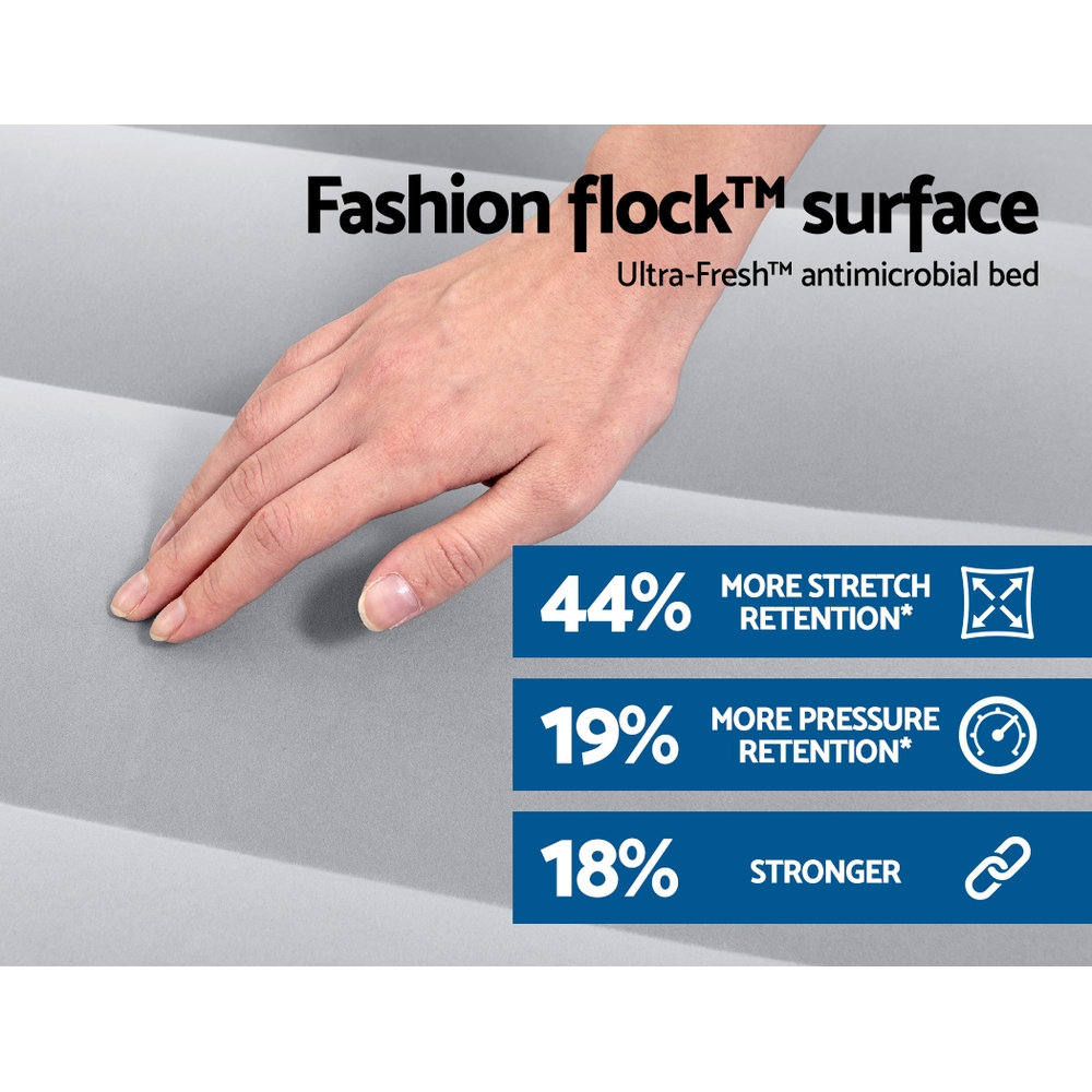 Look no further than a Bestway Air Bed for an easy-to-use portable mattress. With a built-in pump for easy operation, the bed can be inflated in under 180 seconds. Made from sturdy Tritech construction with a comfortable flocked sleeping surface, the bed is cosy and soft for a nice nights sleep. The seamless craftmanship ensures the bed is strong, durable, and suitable for everything from camping to sleepovers. The applied antimicrobial treatment will prevent bacteria and mould growth, making the bed ideal for sensitive sleepers. The bed is suitable for both indoor and outdoor use and comes with a handy carry bag for portability. Enjoy a good nights sleep anywhere with a Bestway Air Bed.